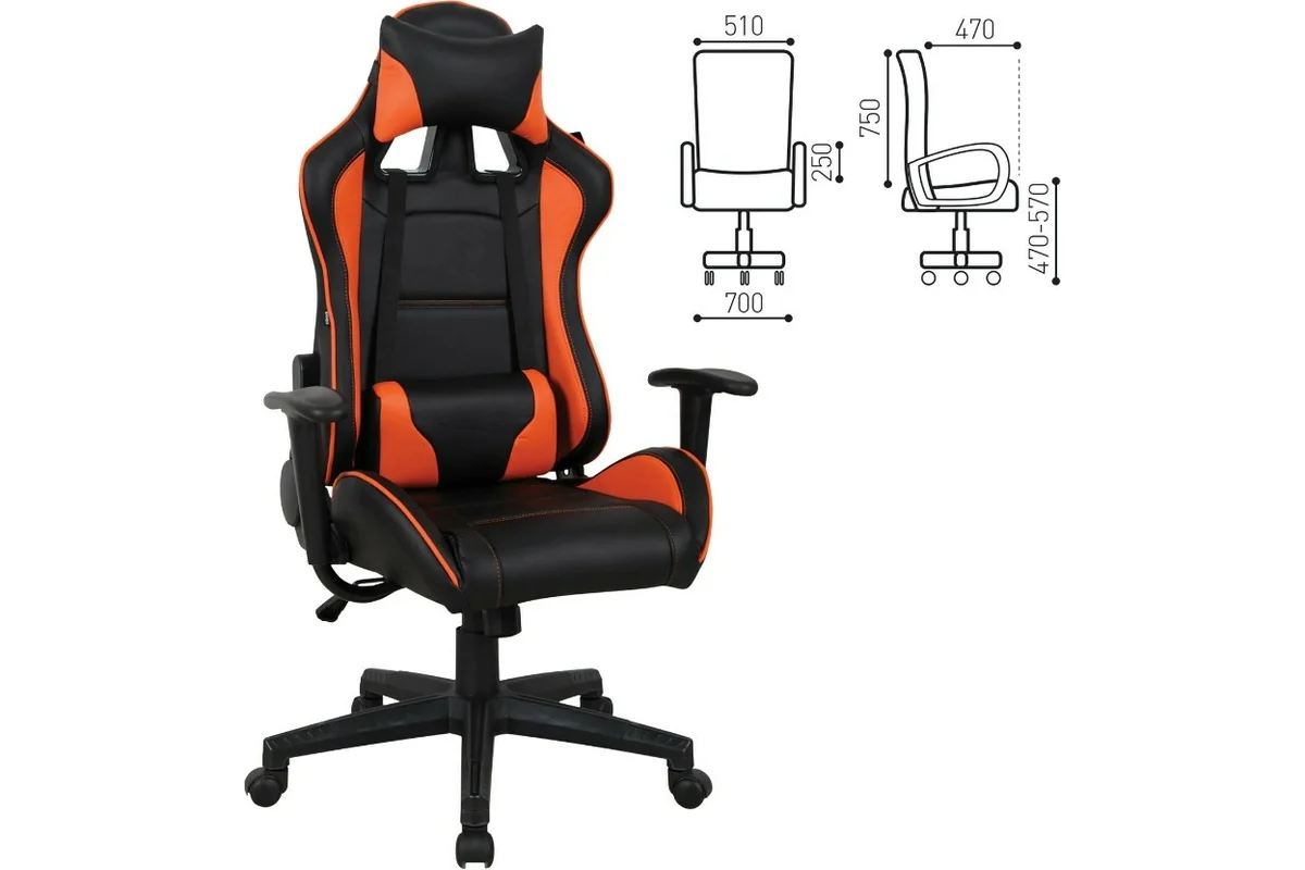 Компьютерное кресло BRABIX GT Racer GM-100 черное/оранжевое 531925 – функциональная модель в комплекте с подушками под поясницу и голову.