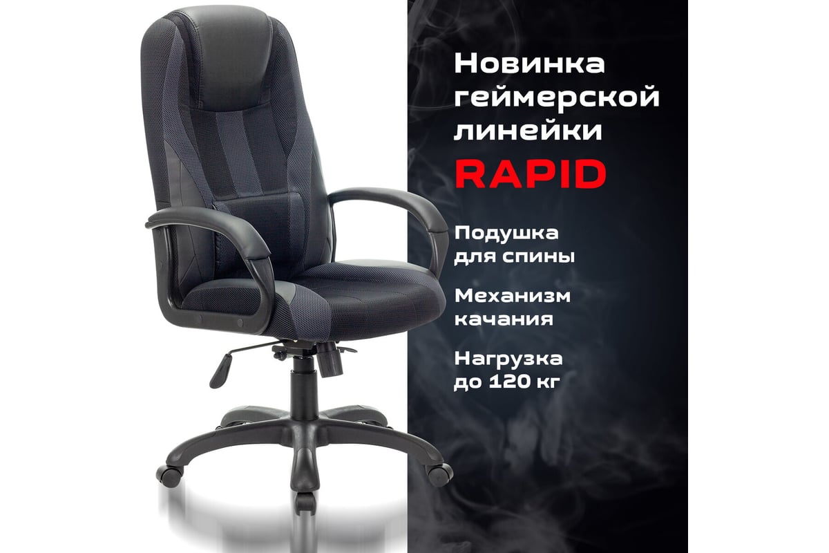 Кресло BRABIX "Rapid GM-102" специально разработано для профессиональных геймеров, проводящих много часов подряд за игрой, не меняя положения тела.