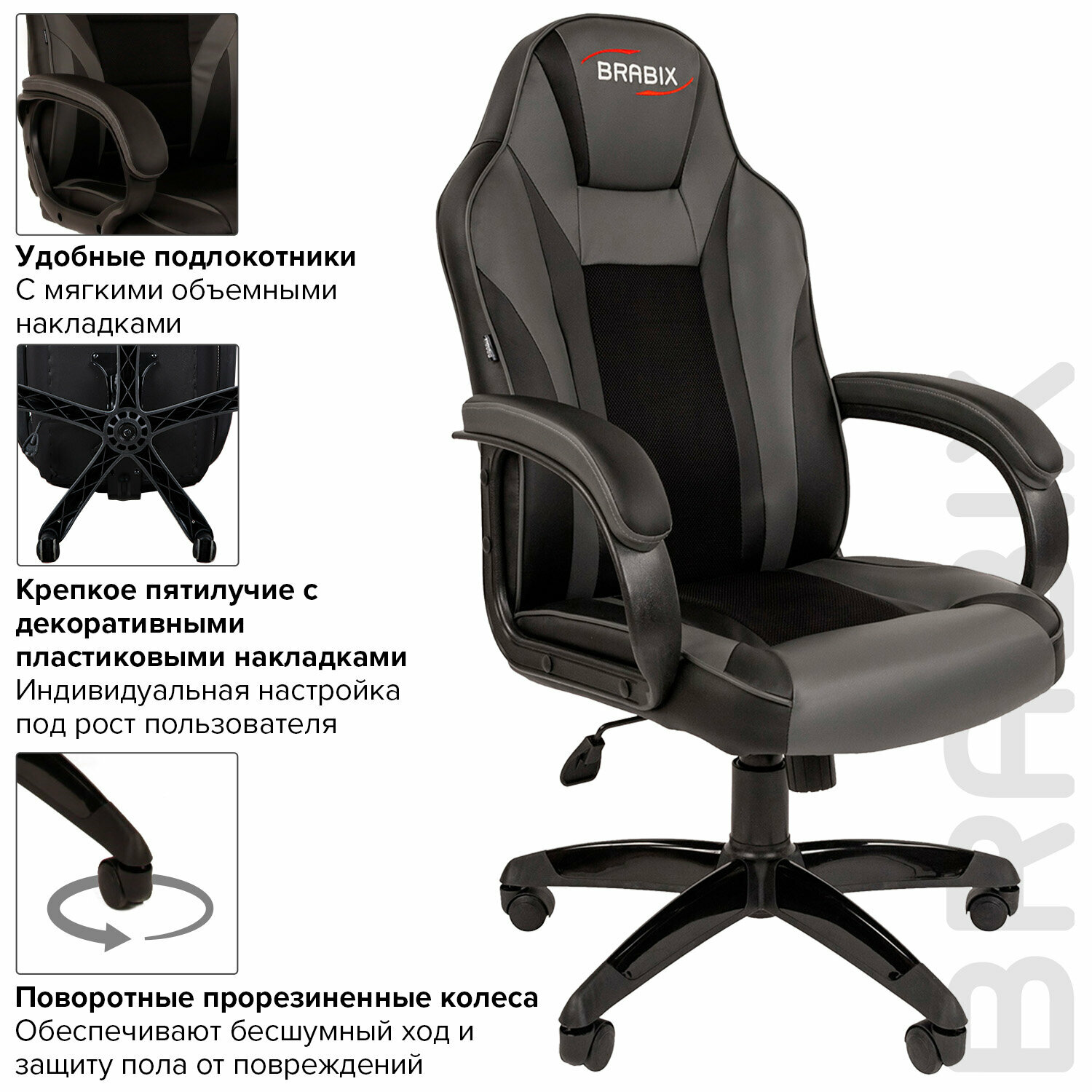 Эргономичное кресло BRABIX для самых увлеченных работников и геймеров, проводящих много часов подряд за компьютером.