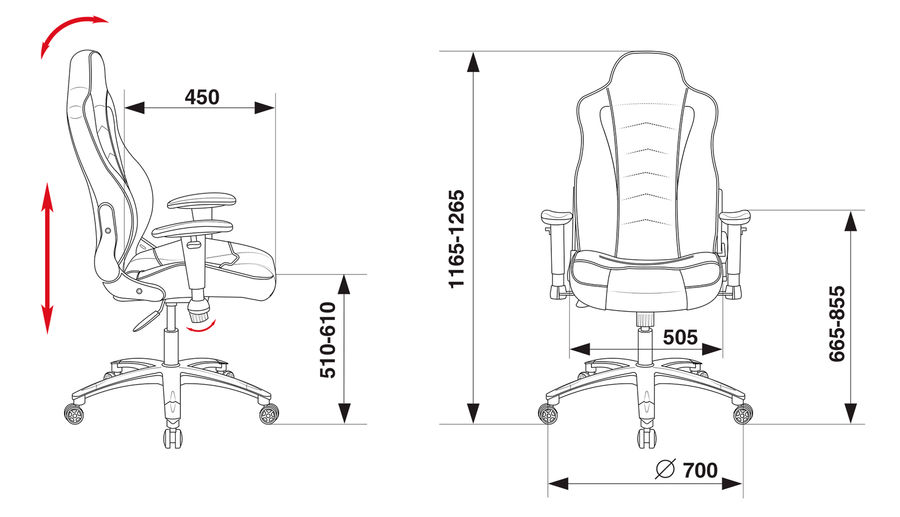Особенности угол отклонения спинки от 100 до 150 град.