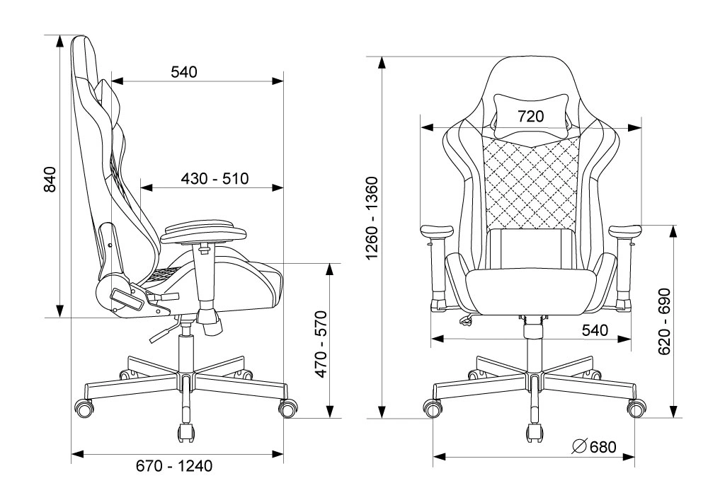 Высота с подлокотниками MIN