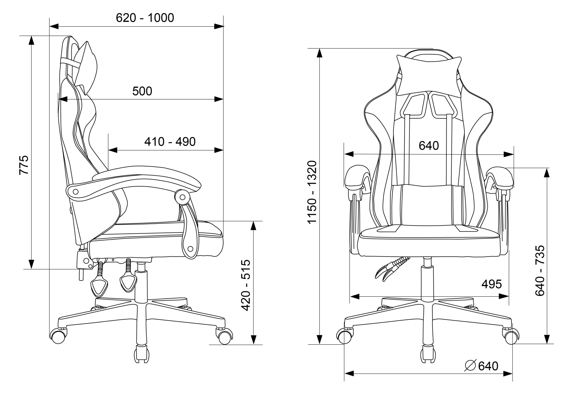 высоты (газлифт), высоты спинки, наклона спинки