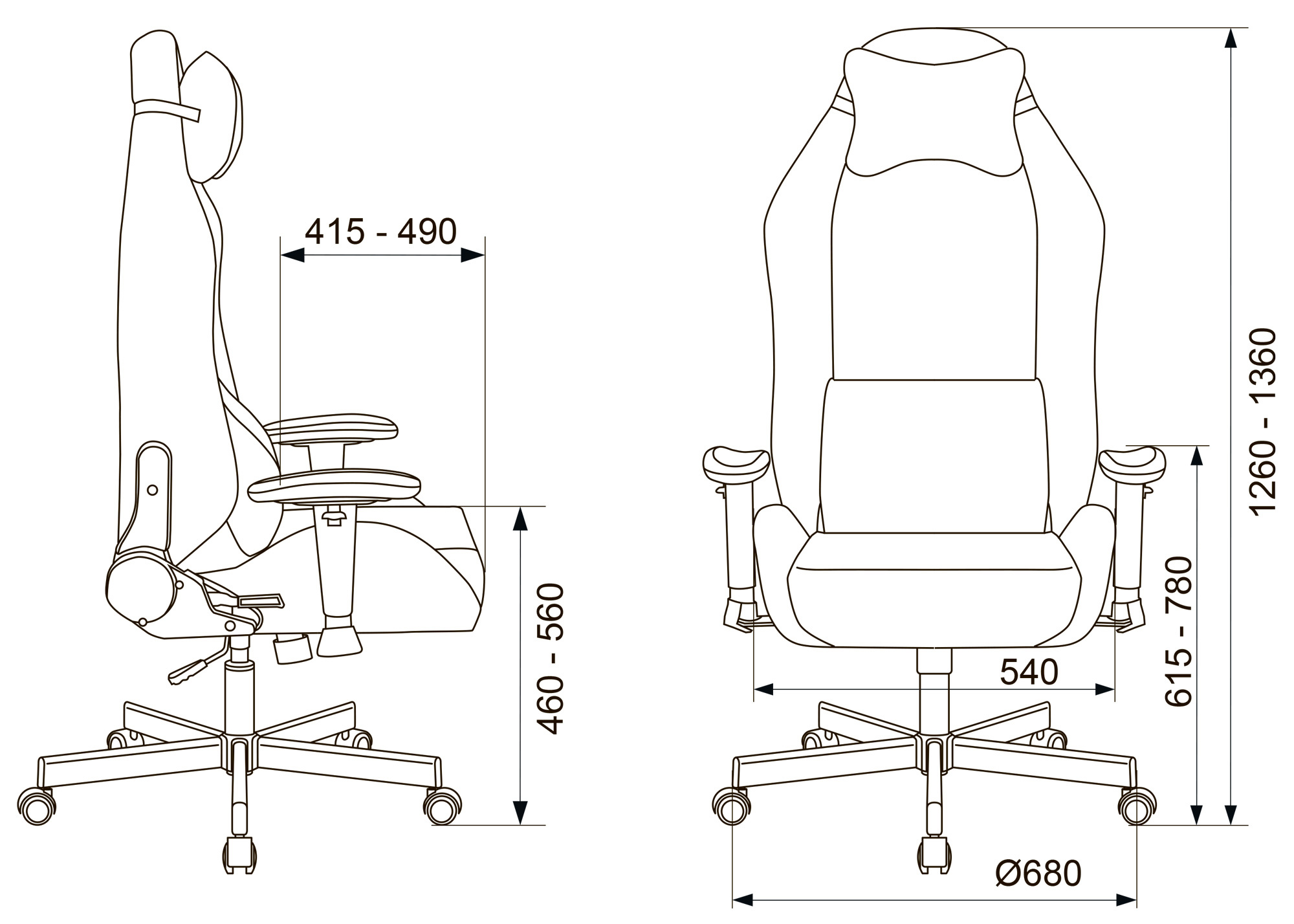 Высота с подлокотниками MIN