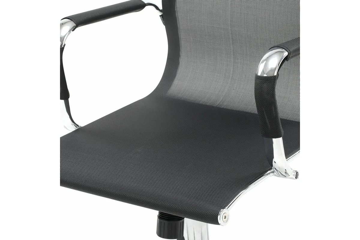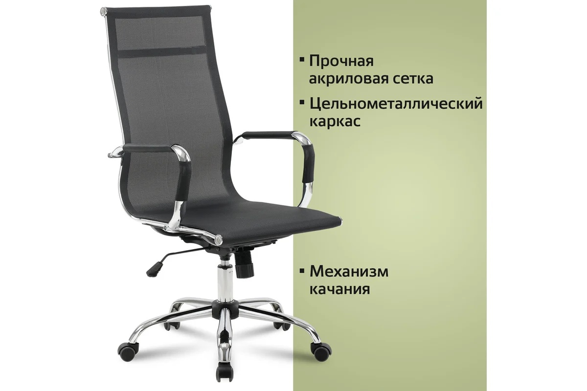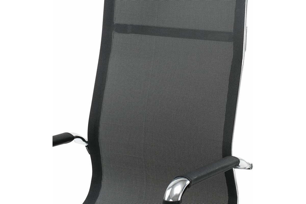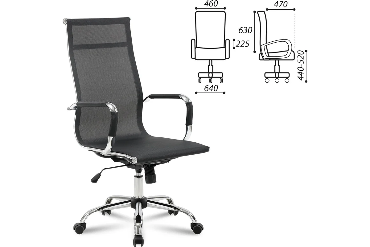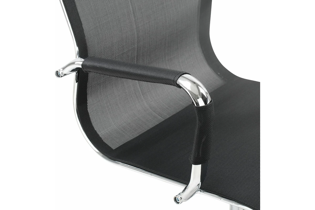 Кресло выполнено на основе хромированного металлического каркаса с прочной сеткой.