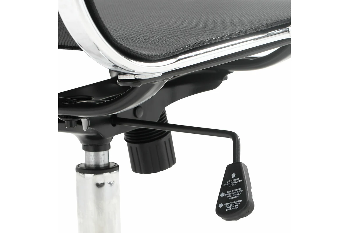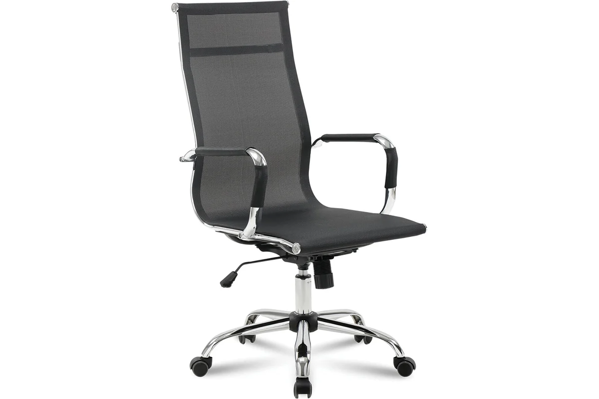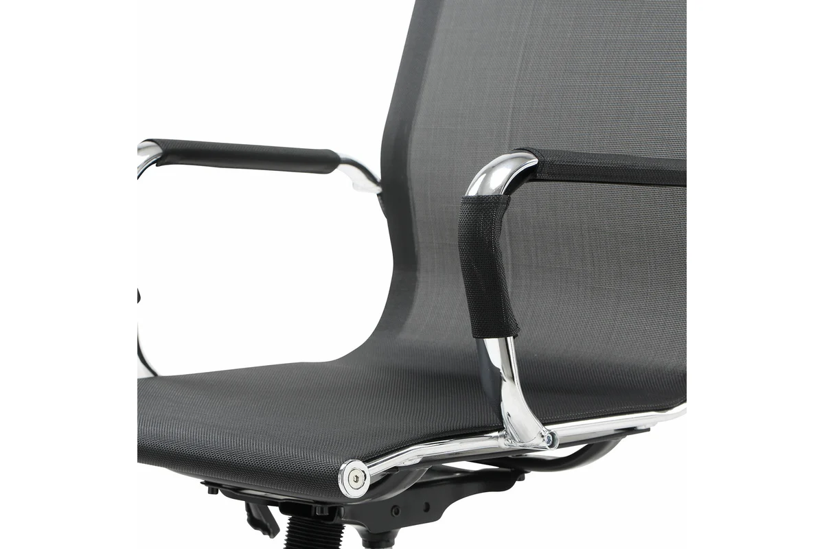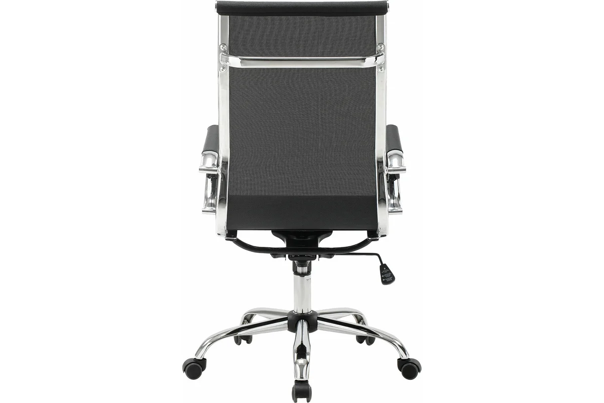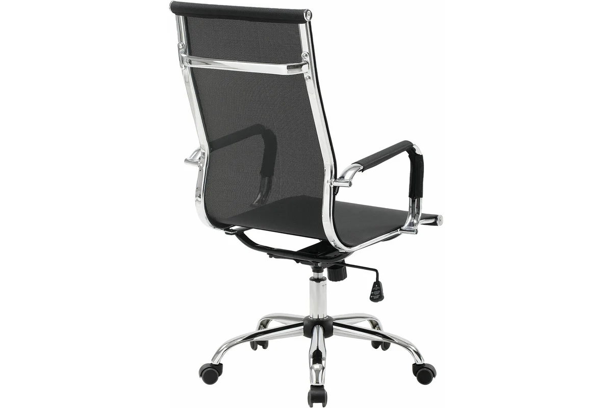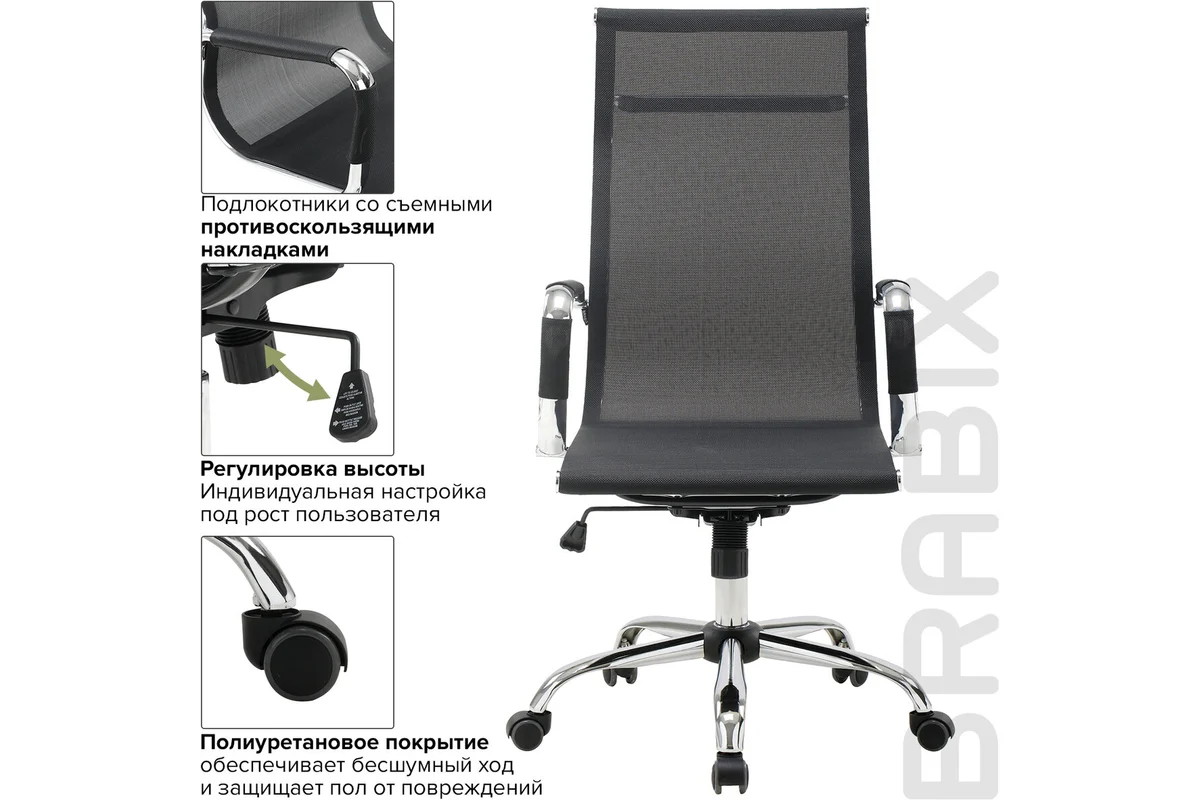 Кресло выполнено на основе хромированного металлического каркаса с прочной сеткой.