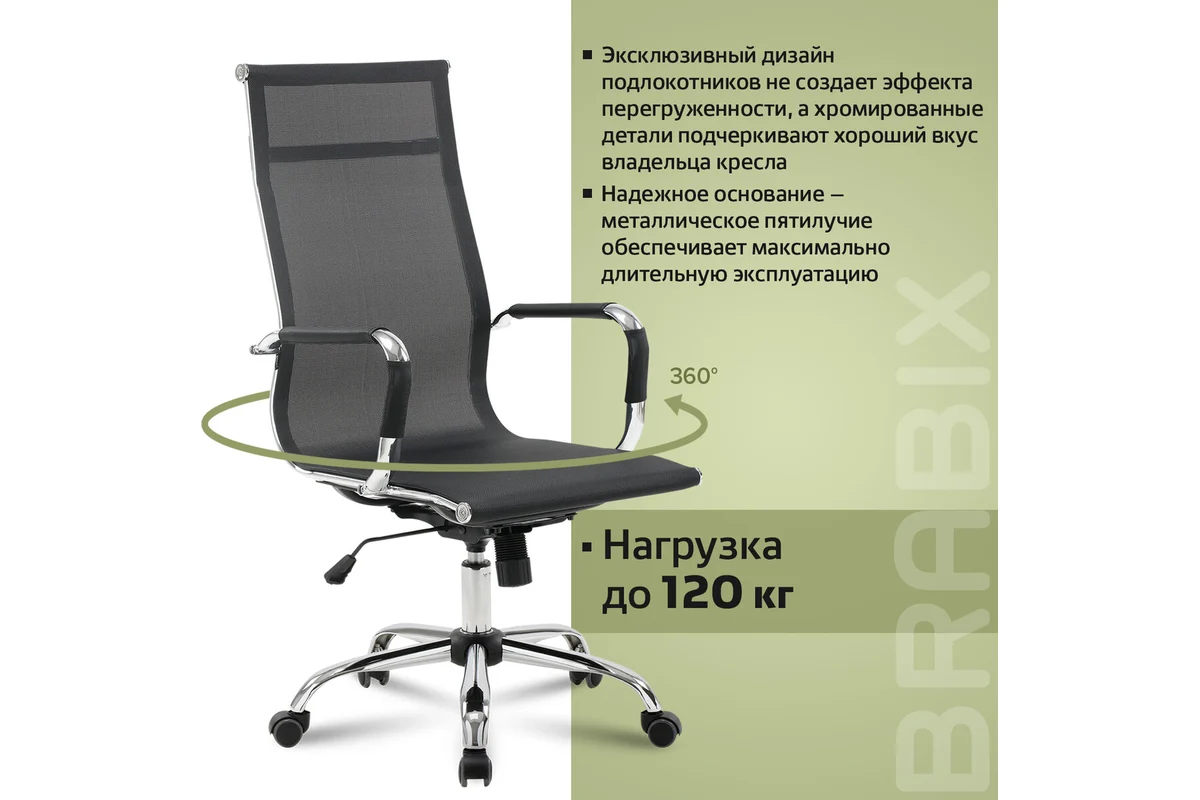 Хромированное пятилучие и подлокотники подчеркивают изысканный вкус владельца.