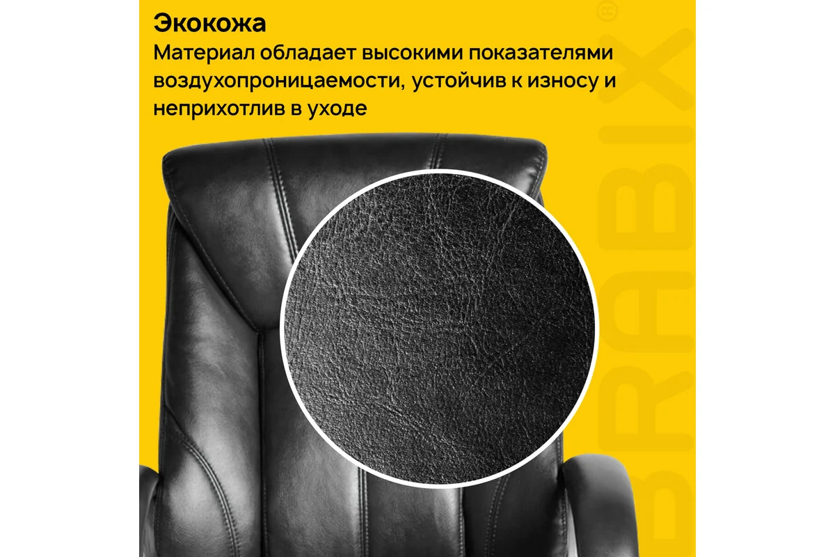 Обивка выполнена из экокожи - современного материала на хлопковой основе. Благодаря тканой основе и пористому полиуретану экокожа отлично пропускает воздух, что положительным образом сказывается на комфорте во время эксплуатации. Материал износоустойчив и неприхотлив в уходе - кресло сохранит привлекательный внешний вид в течение длительного времени.