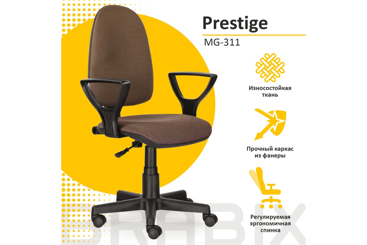 Кресло, регулируемая эргономичная спинка, ткань, коричневое С-24, BRABIX Prestige Ergo MG-311 531875 имеет прочное и надежное основание, которое выдерживает значительную нагрузку. Удобная регулировка помогает быстро настроить высоту. Размеры модели позволяют использовать ее в ограниченном пространстве кабинета.