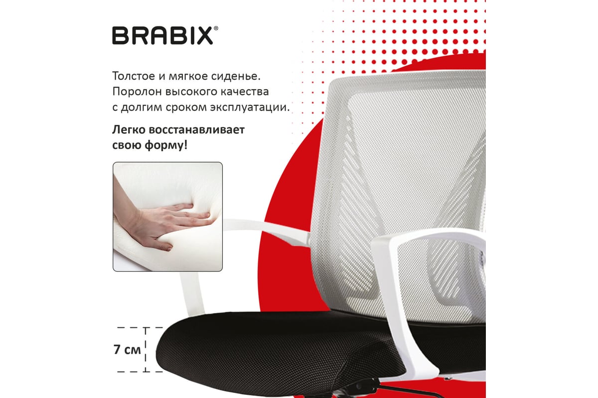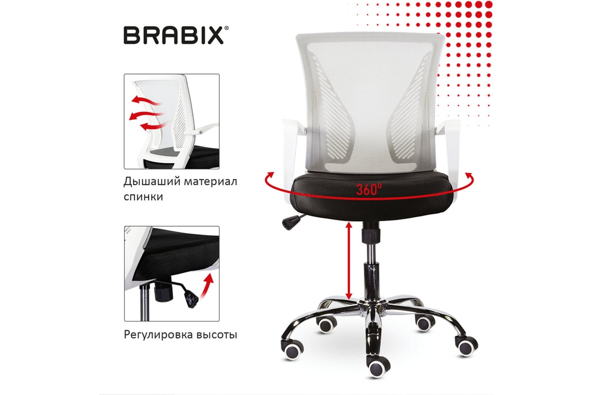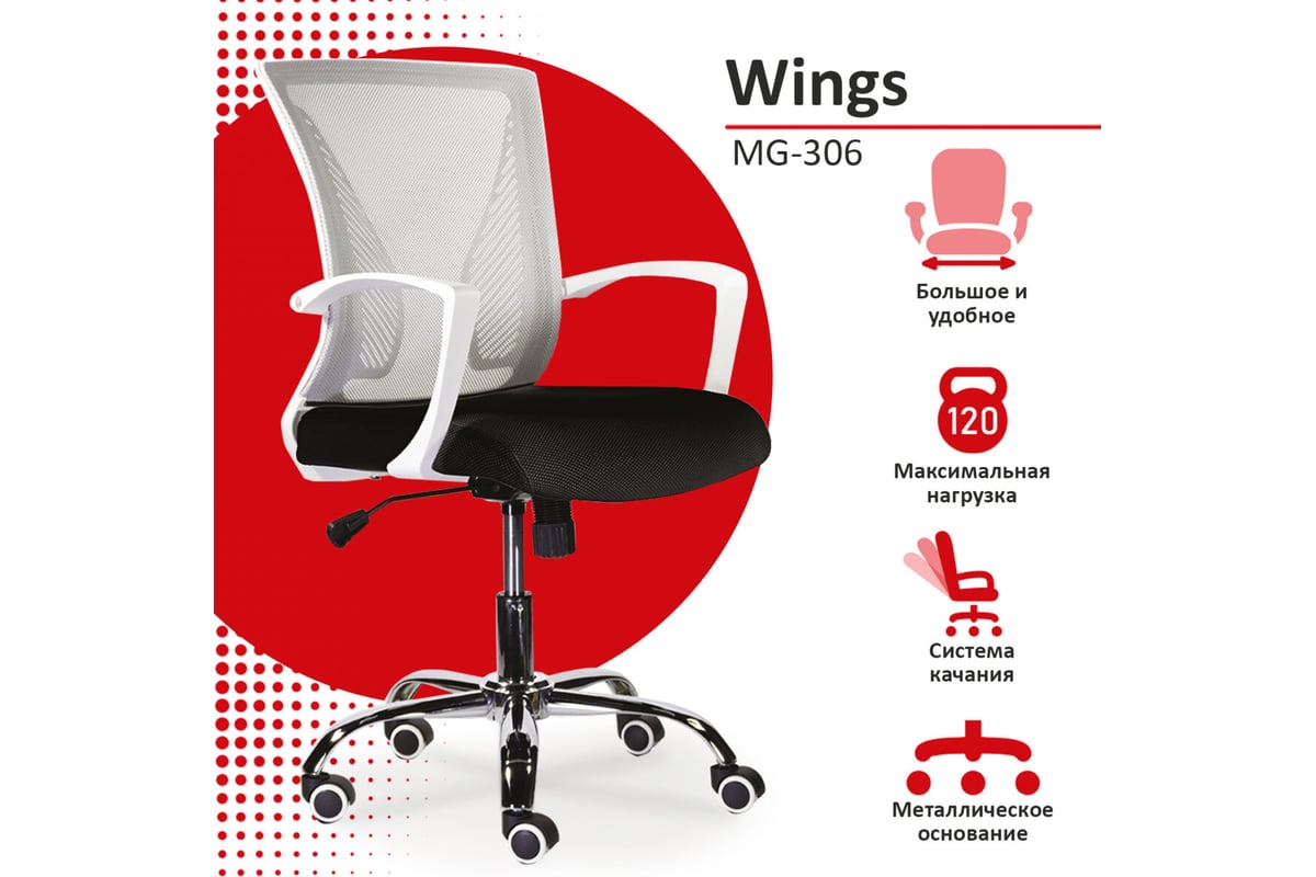Кресло BRABIX Wings MG-306, пластик белый, хром, сетка, серое/черное E-11, 532010 обеспечивает высокий уровень комфорта.