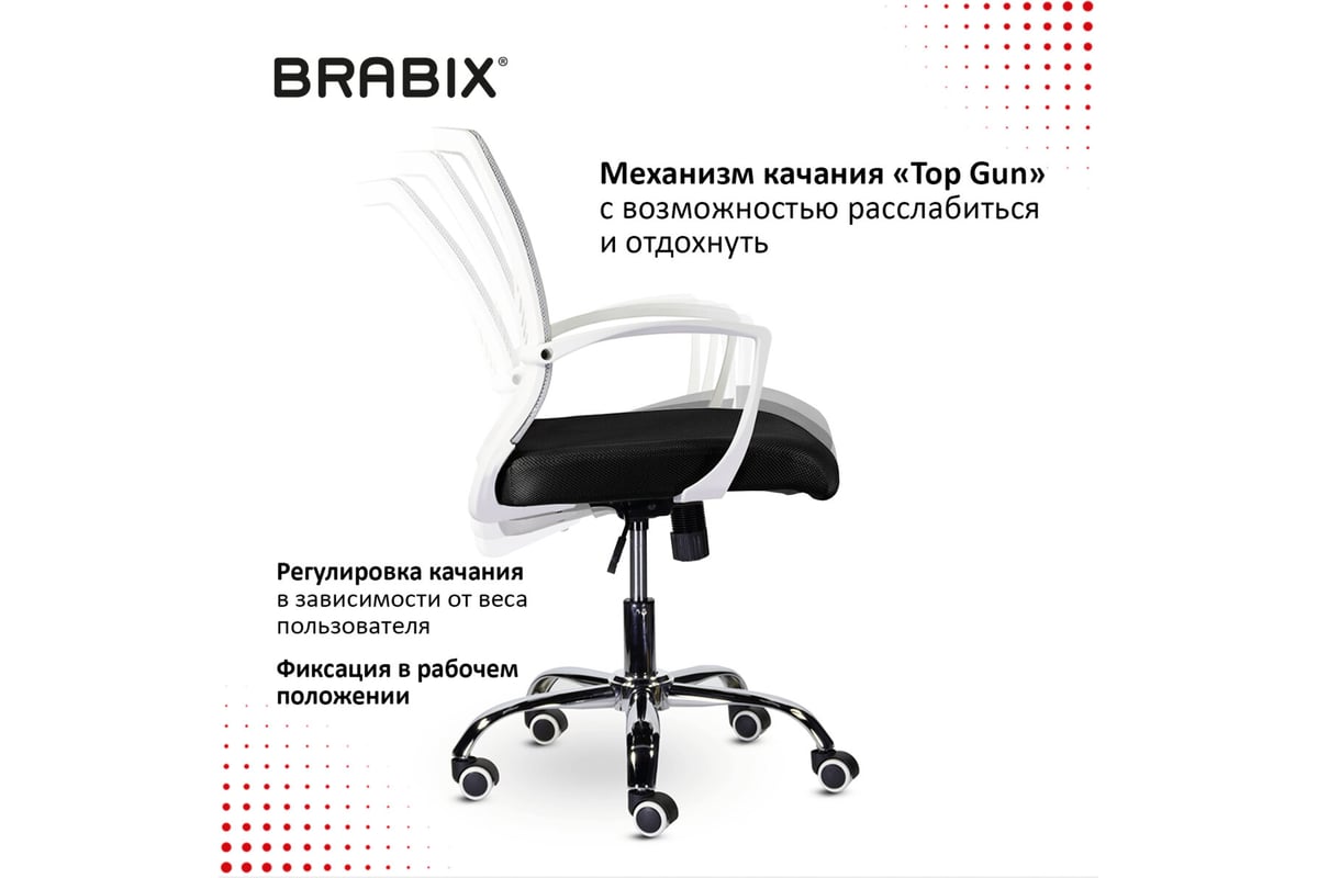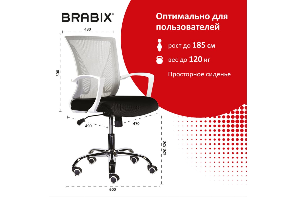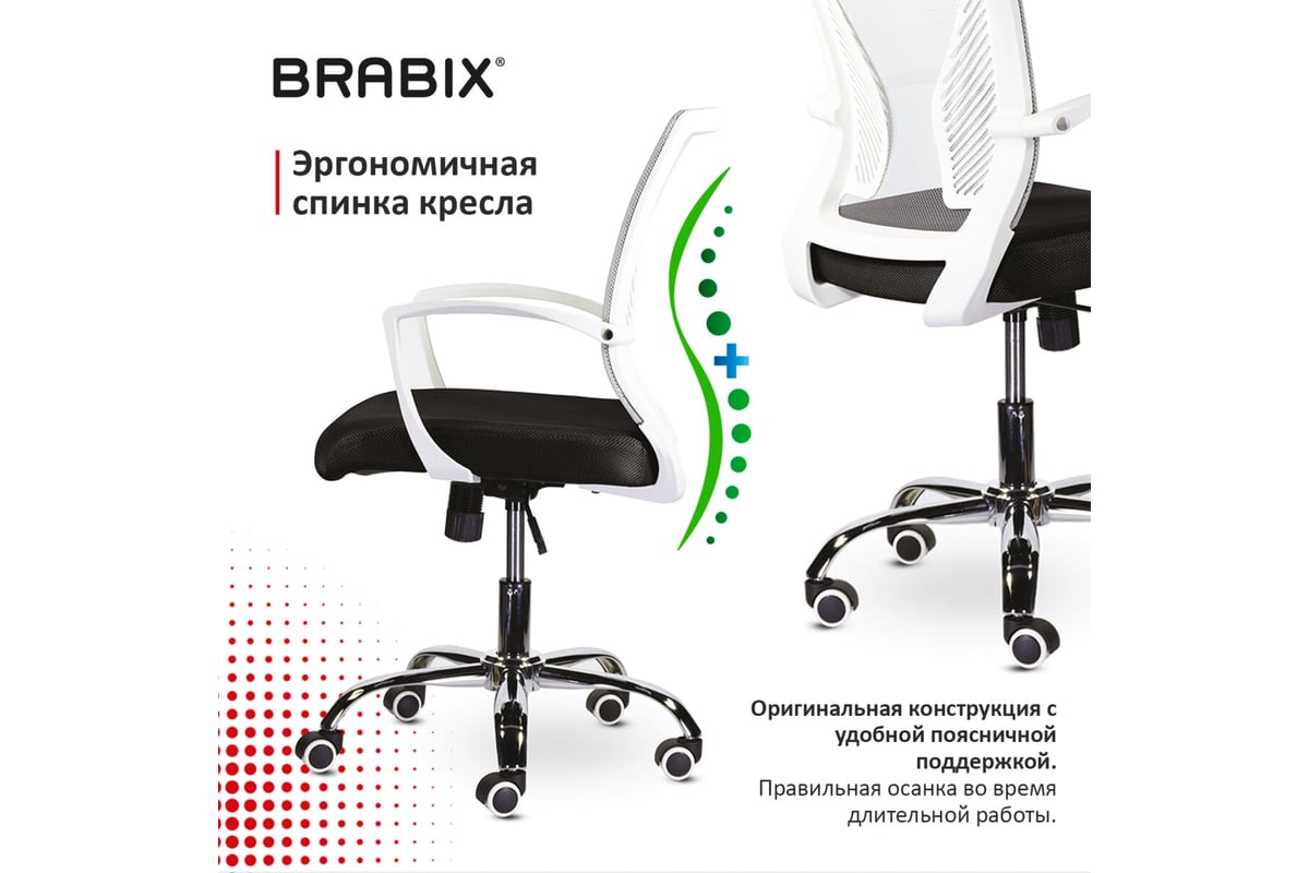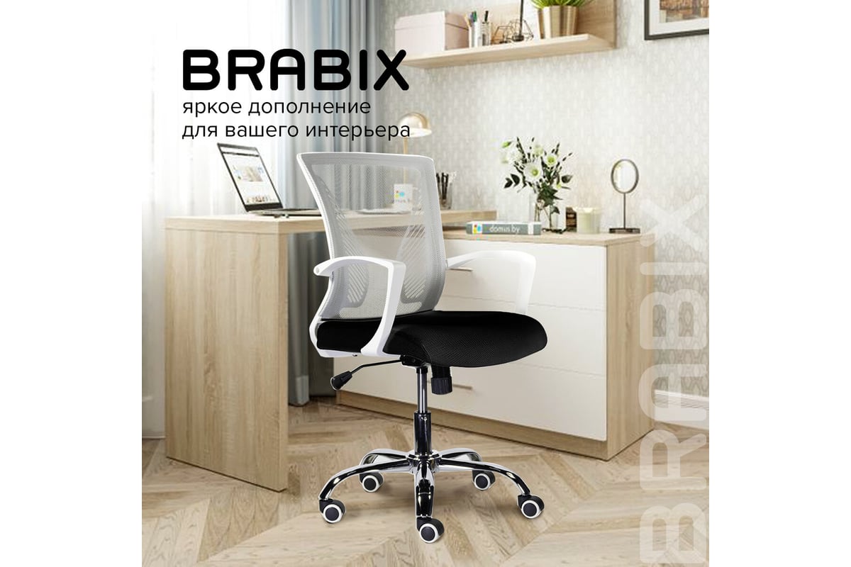 Кресло BRABIX Wings MG-306, пластик белый, хром, сетка, серое/черное E-11, 532010 обеспечивает высокий уровень комфорта.