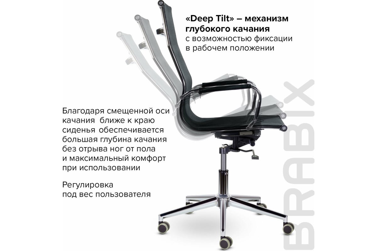 - Механизм качания "Deep Tilt" с фиксацией в рабочем положении поможет расслабиться и отдохнуть