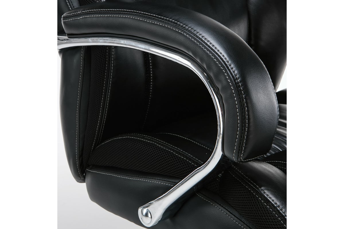 Прочное, просторное и удобное кресло с расширенной гарантией на 24 месяца. Обивка кресла выполнена из рециклированной кожи - современного материала, созданного из измельченных частиц натуральной кожи. По эластичности и прочности рециклированная кожа максимально близка к натуральной. Материал хорошо пропускает воздух, что положительным образом сказывается на комфорте во время эксплуатации. Материал износоустойчив, кресло способно сохранять привлекательный внешний вид длительное время.