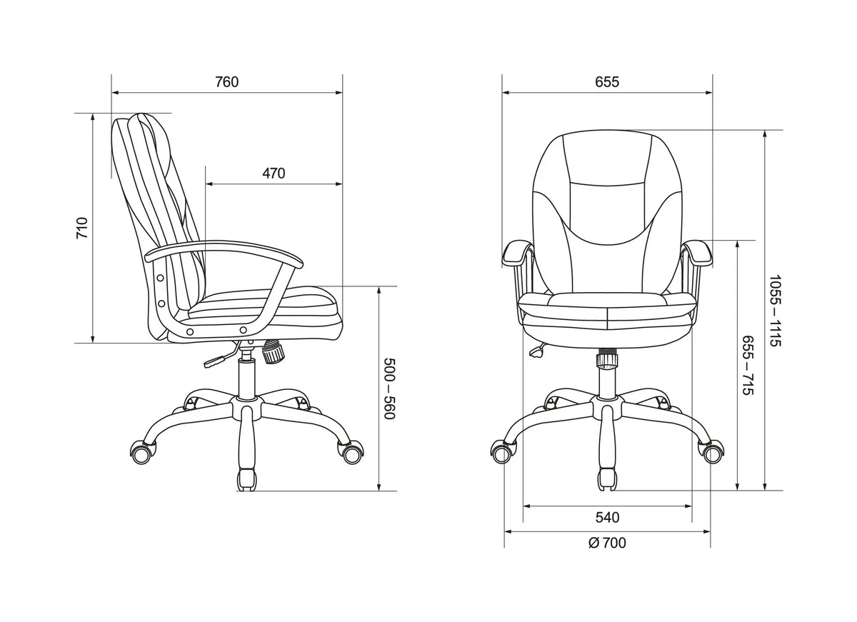 Высота с подлокотниками MIN