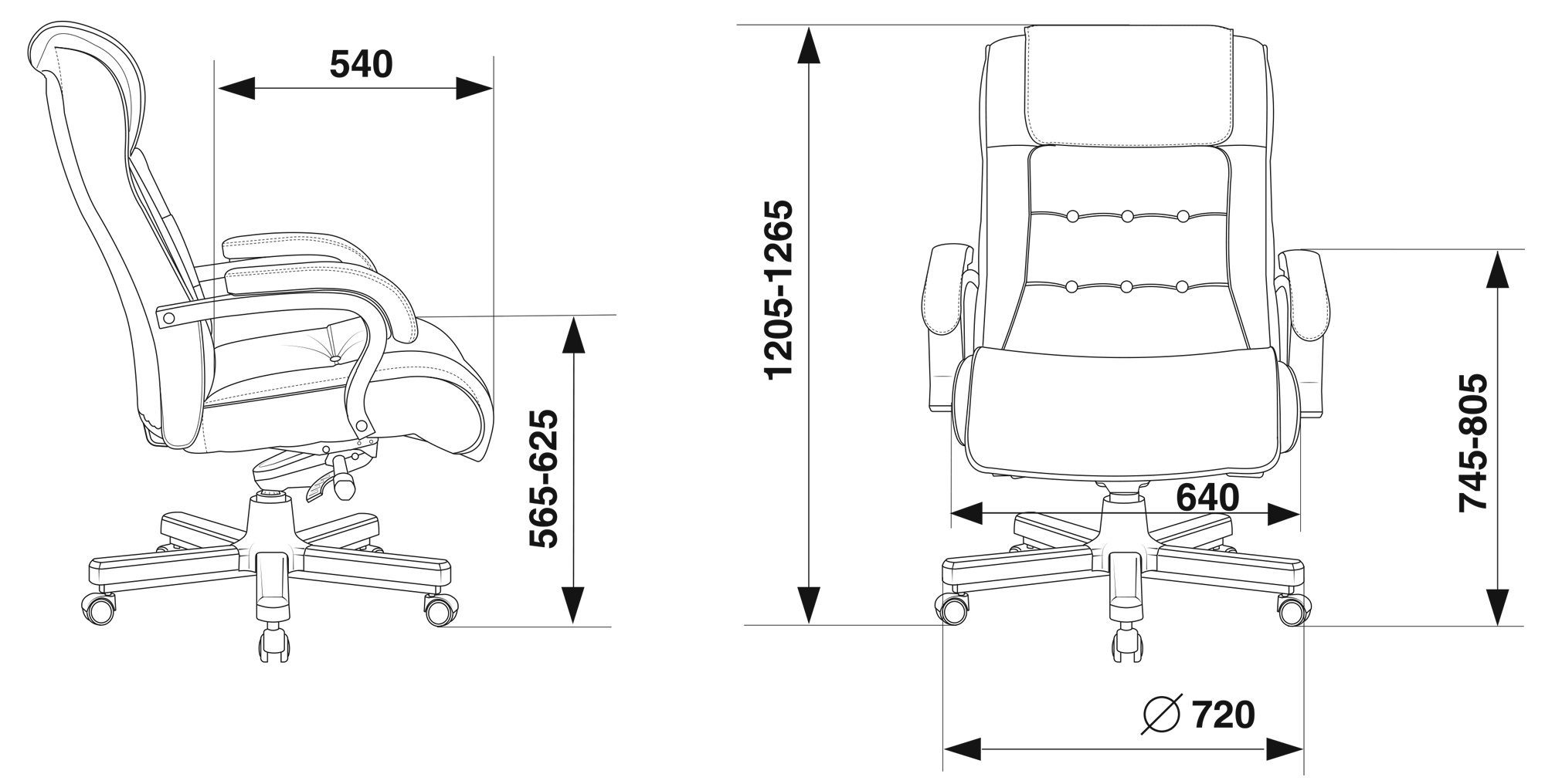 Высота с подлокотниками MIN