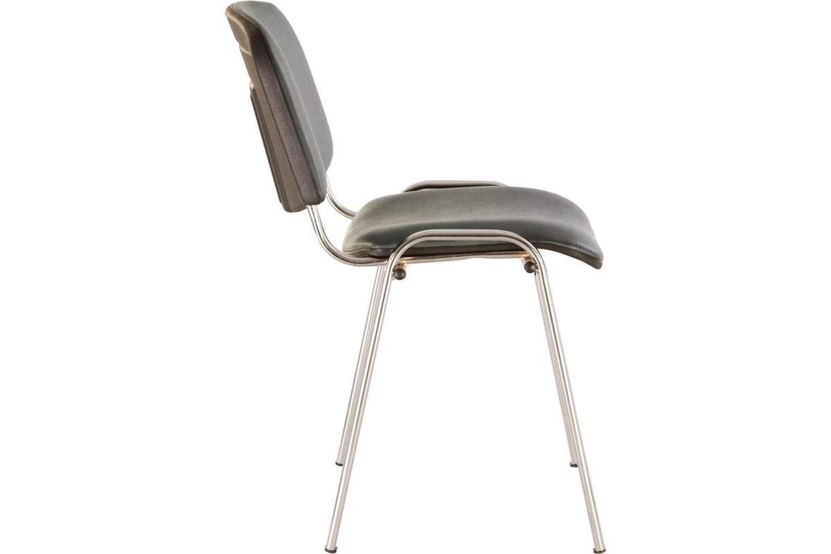 Стул на прочном металлическом хромированном каркасе, выполненном из плоскоовальной трубы сечением 30х15 мм, толщина стенок – 1,2 мм. Обивка выполнена из устойчивого к износу кожзама. Пластиковые насадки на ножках не дадут испортить напольное покрытие.