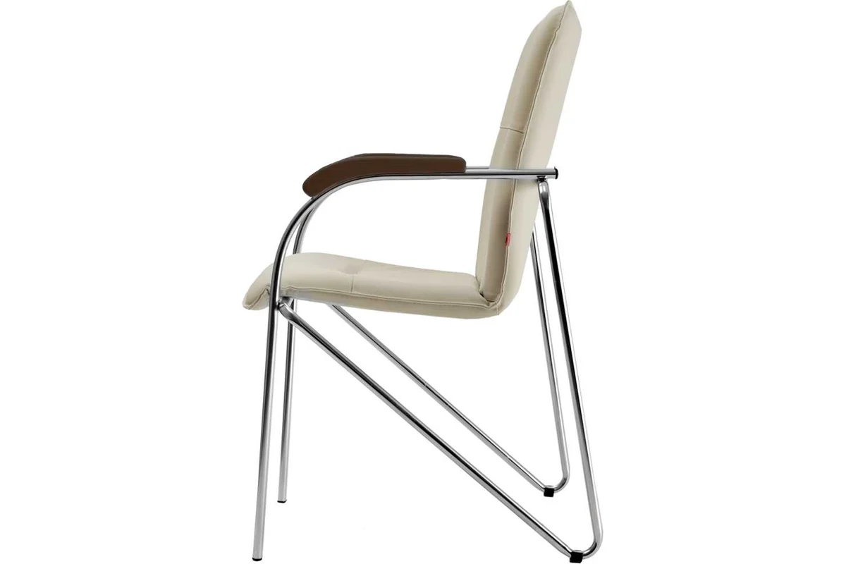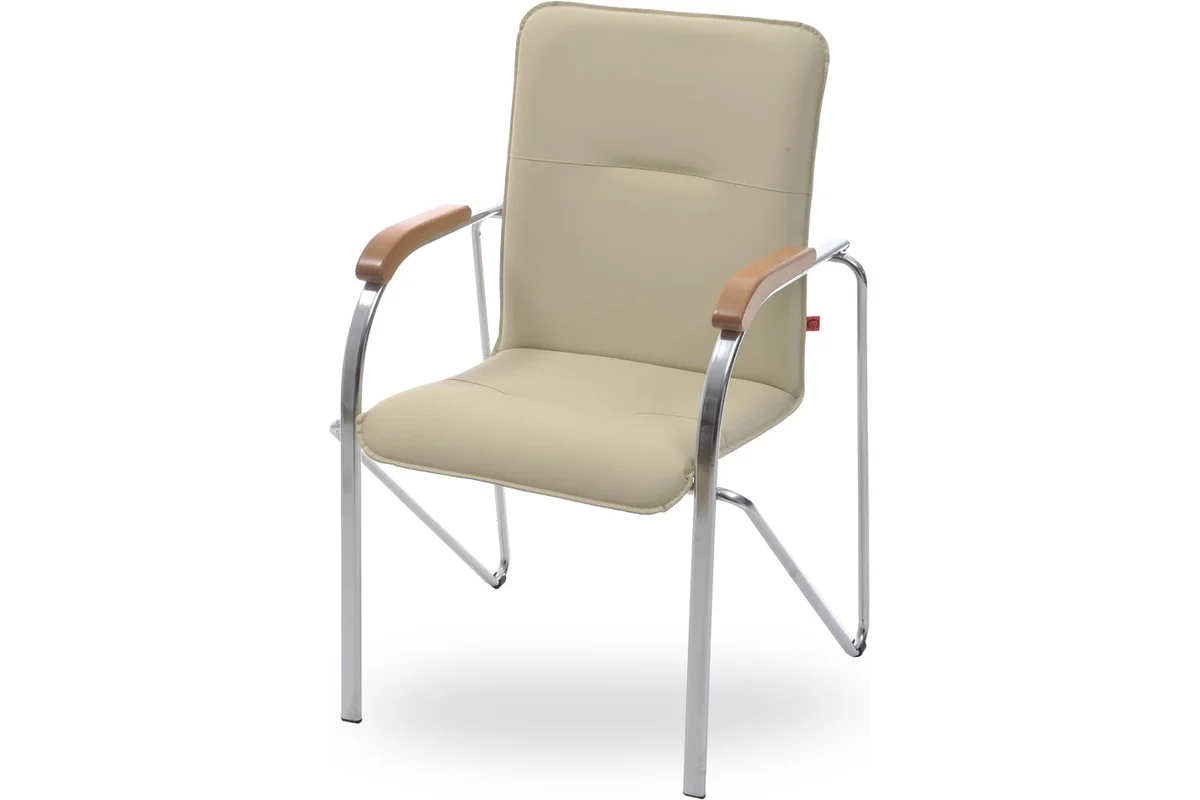 Стул «Самба BOX4» – это многофункциональное изделие, применяемое в совершенно разных по назначению помещениях: офисы, гостиницы, общественные места и даже дома. Этому способствует как внешний вид – кресло выглядит легким и утонченным благодаря негромоздкому, но крайне прочному каркасу, и нетолстым сидению и спинке, а также материалам и технологиям, применяемым при изготовлении. Материал подлокотников - дерево