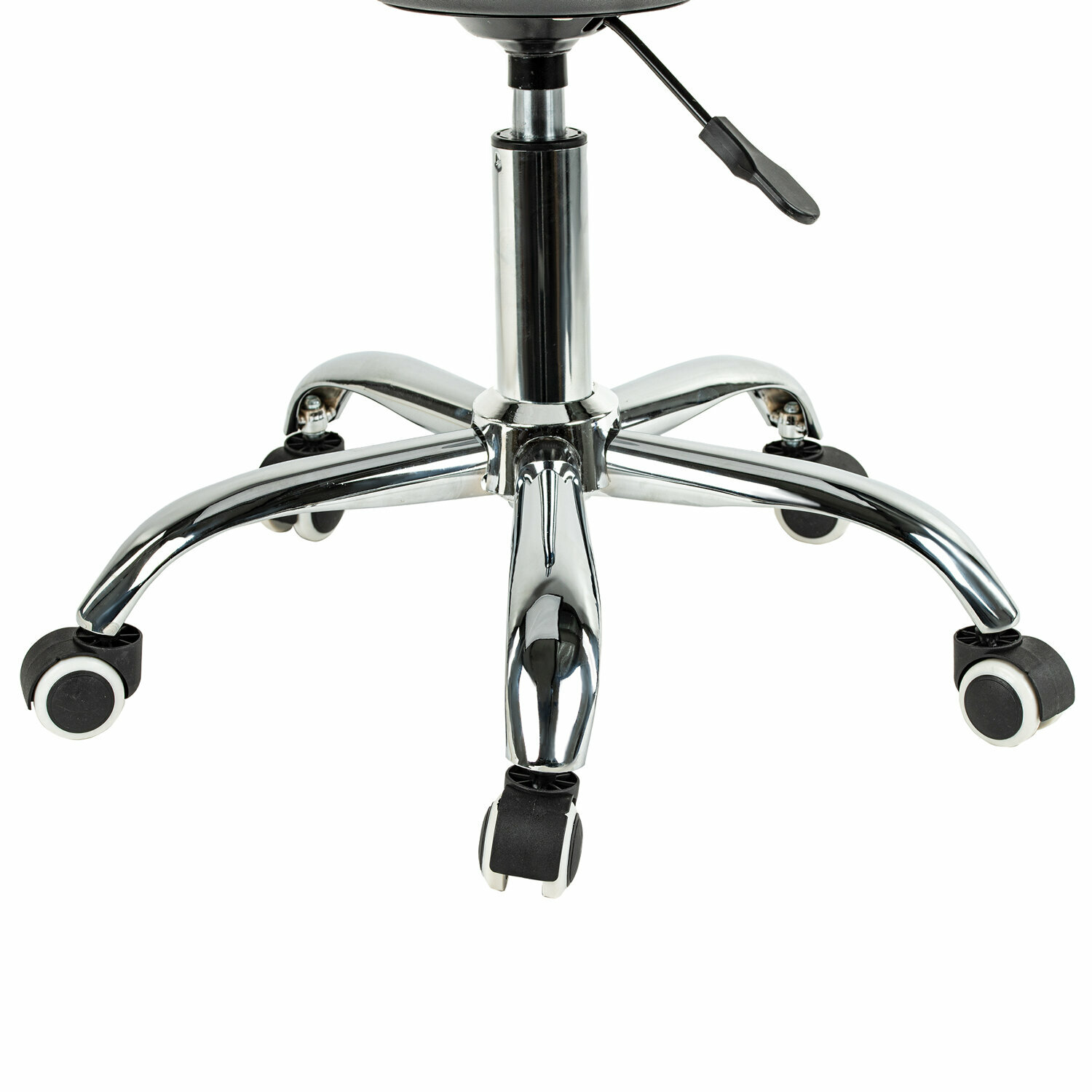 Кресло оснащено системой регулировки высоты. Ролики с мягким полиуретановым кольцом не царапают пол и снижают уровень шума. Хромированное пятилучие способно выдержать нагрузку до 100 кг.