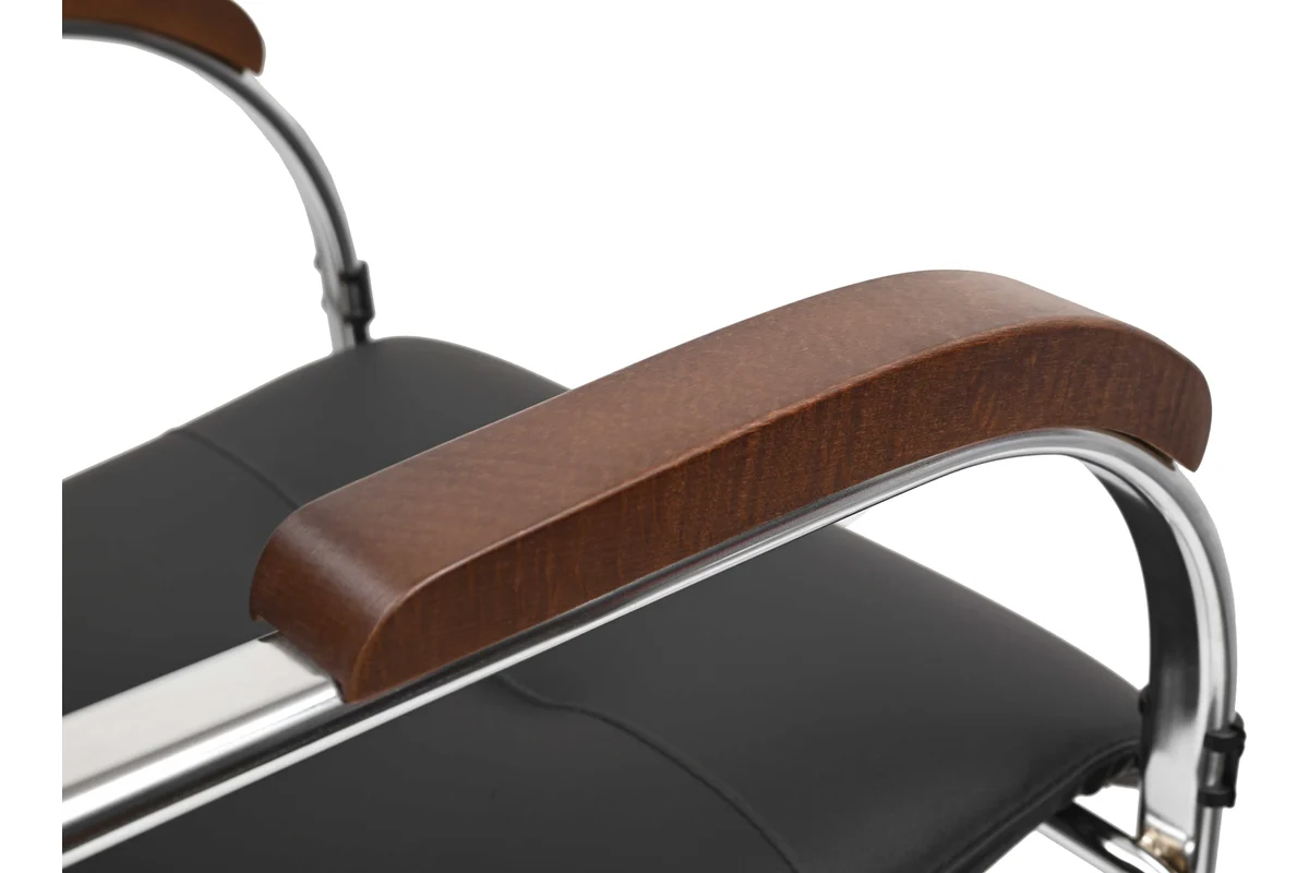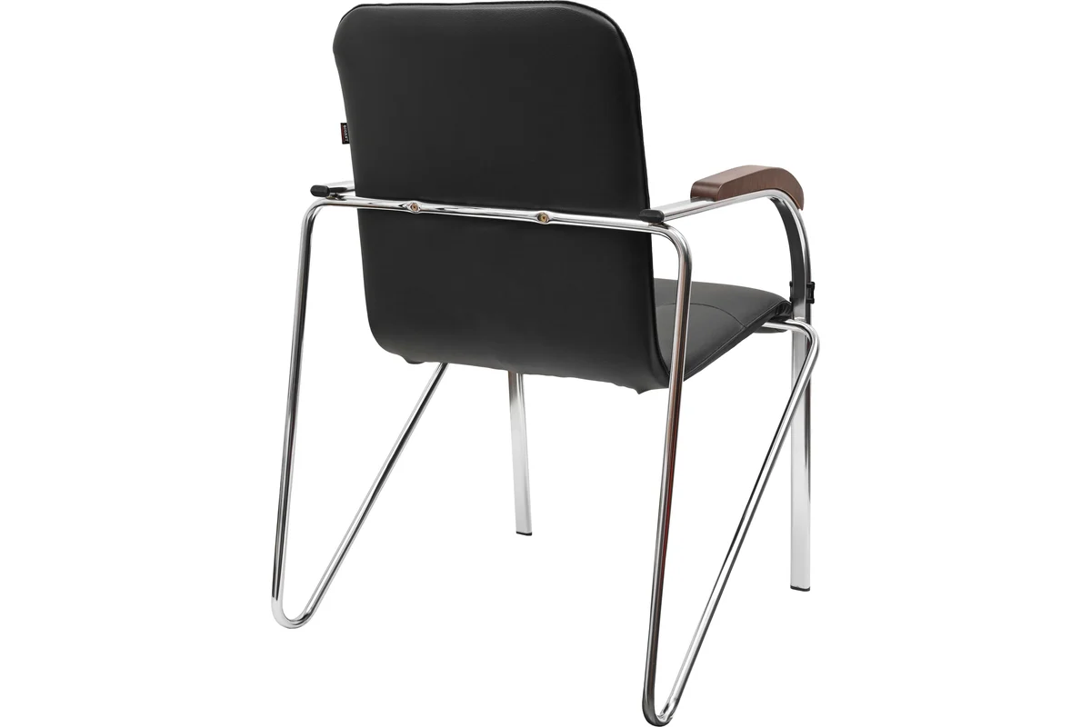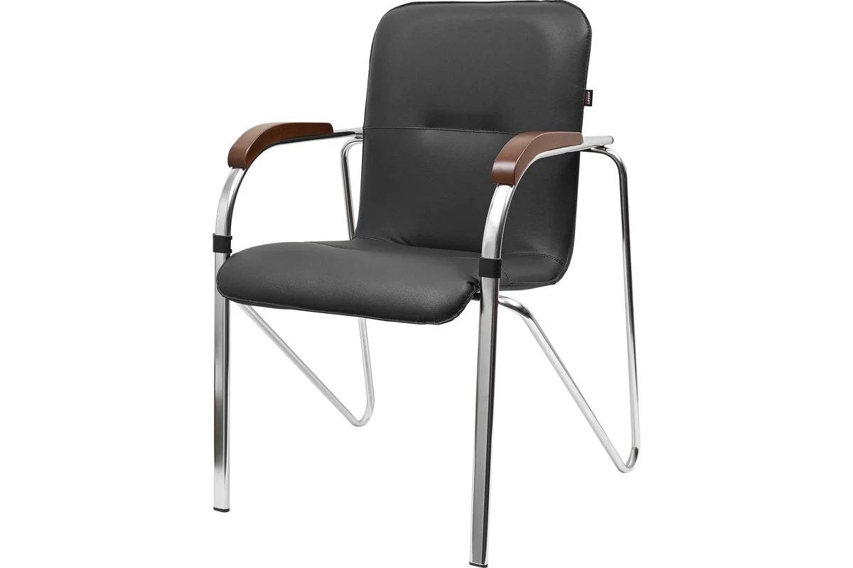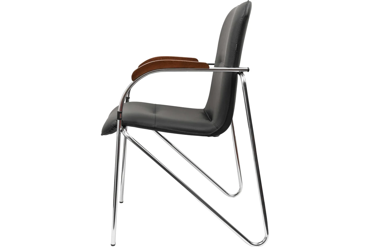 Стул устанавливается в офисных помещениях, административных учреждениях и предназначено для приема посетителей. Подлокотники изготовлены из массива натурального дерева, покрытого полиуретановым лаком. На опорную поверхность ножек устанавливаются пластиковые заглушки, что защищает напольное покрытие от повреждений. Кресло состоит из: металлического каркаса, спинки-сиденья, подлокотников, пластиковых заглушек, пластиковых опор и крепежных элементов.