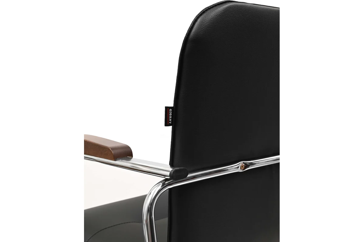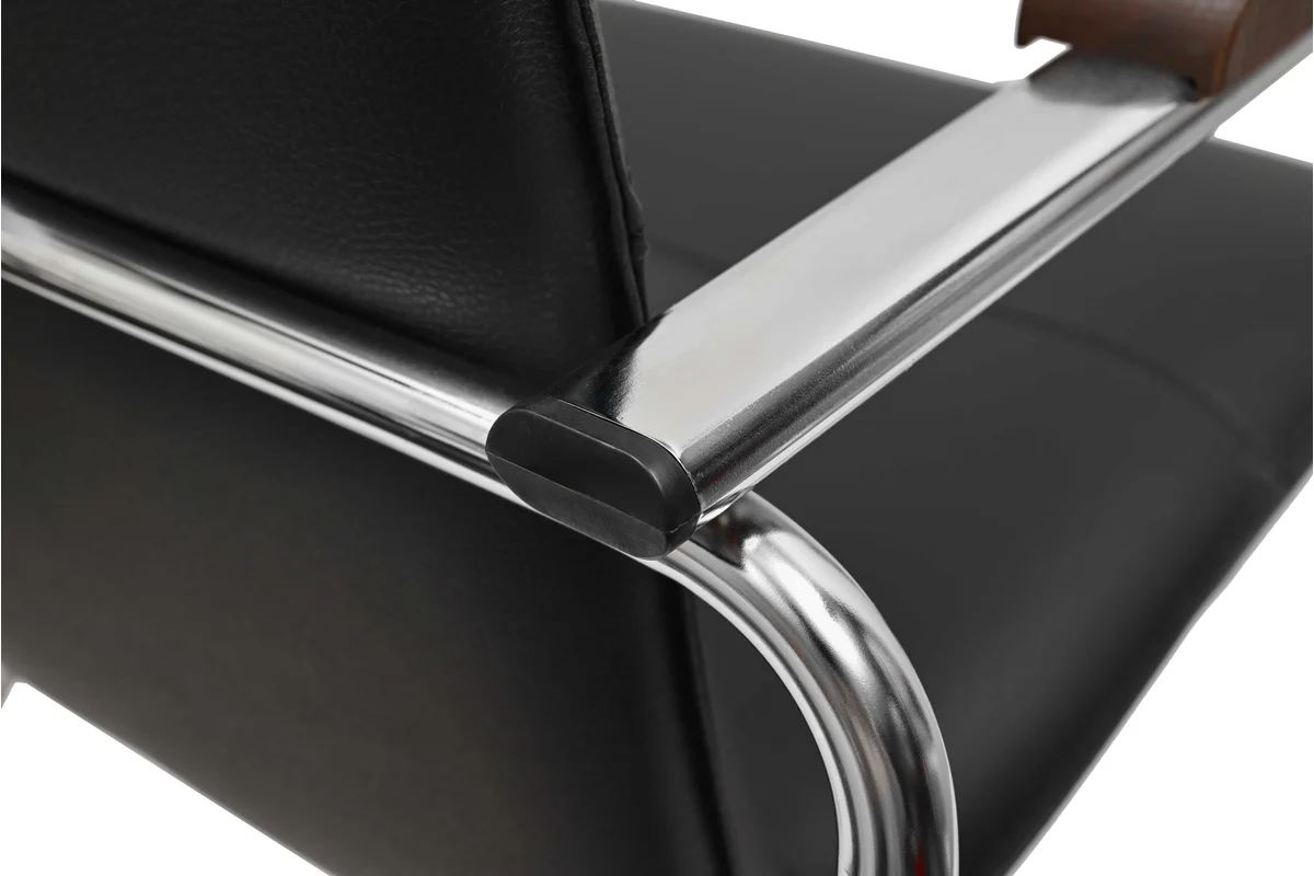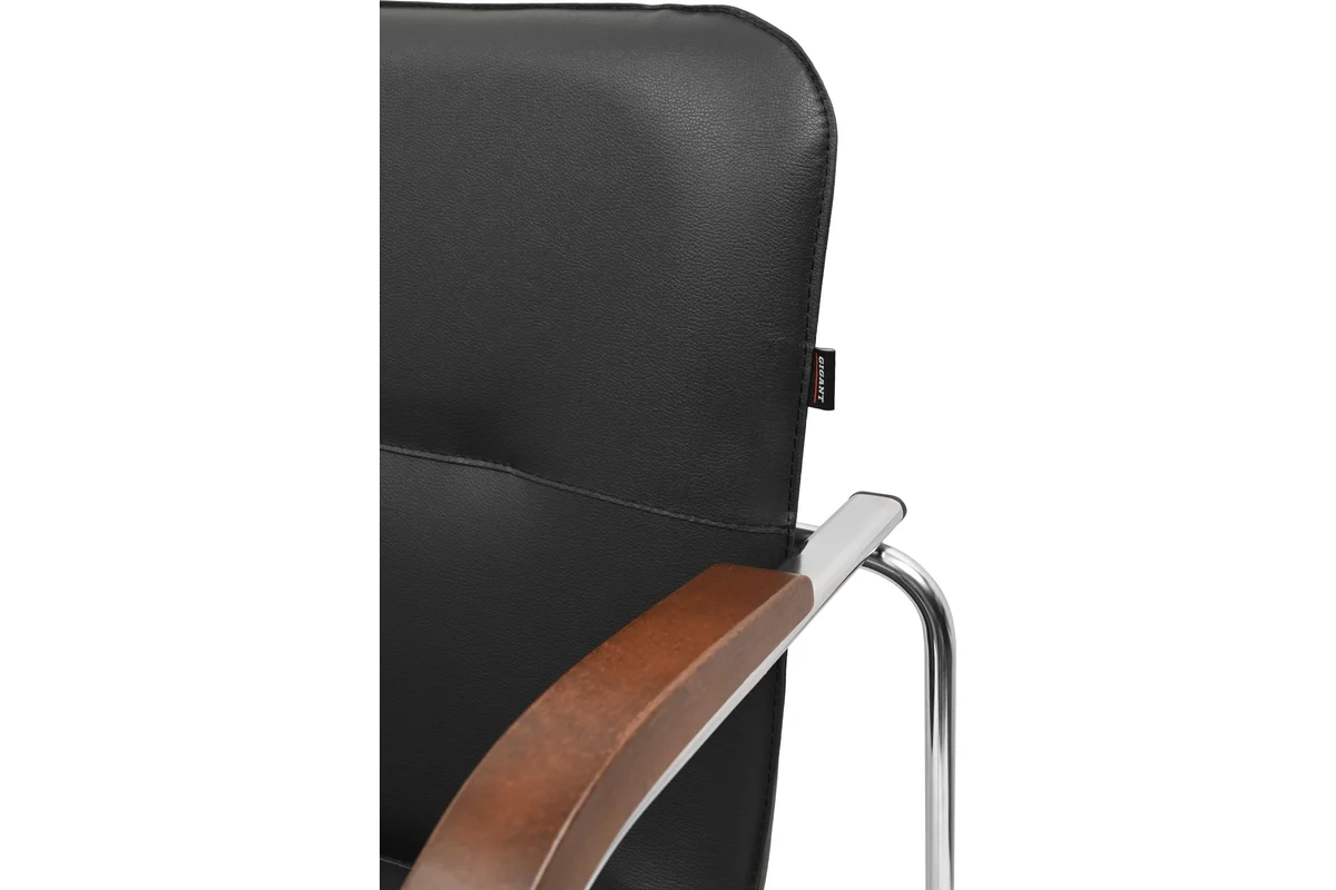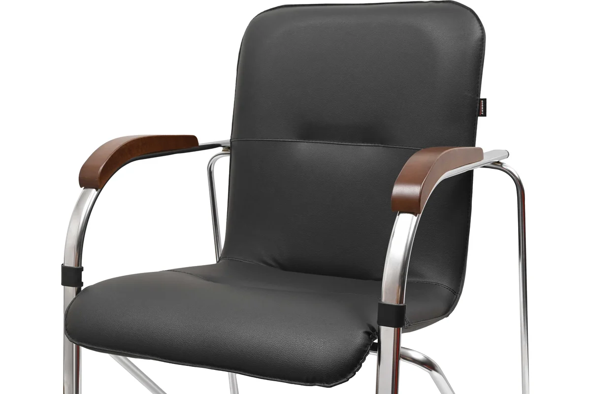 Стул устанавливается в офисных помещениях, административных учреждениях и предназначено для приема посетителей. Подлокотники изготовлены из массива натурального дерева, покрытого полиуретановым лаком. На опорную поверхность ножек устанавливаются пластиковые заглушки, что защищает напольное покрытие от повреждений. Кресло состоит из: металлического каркаса, спинки-сиденья, подлокотников, пластиковых заглушек, пластиковых опор и крепежных элементов.