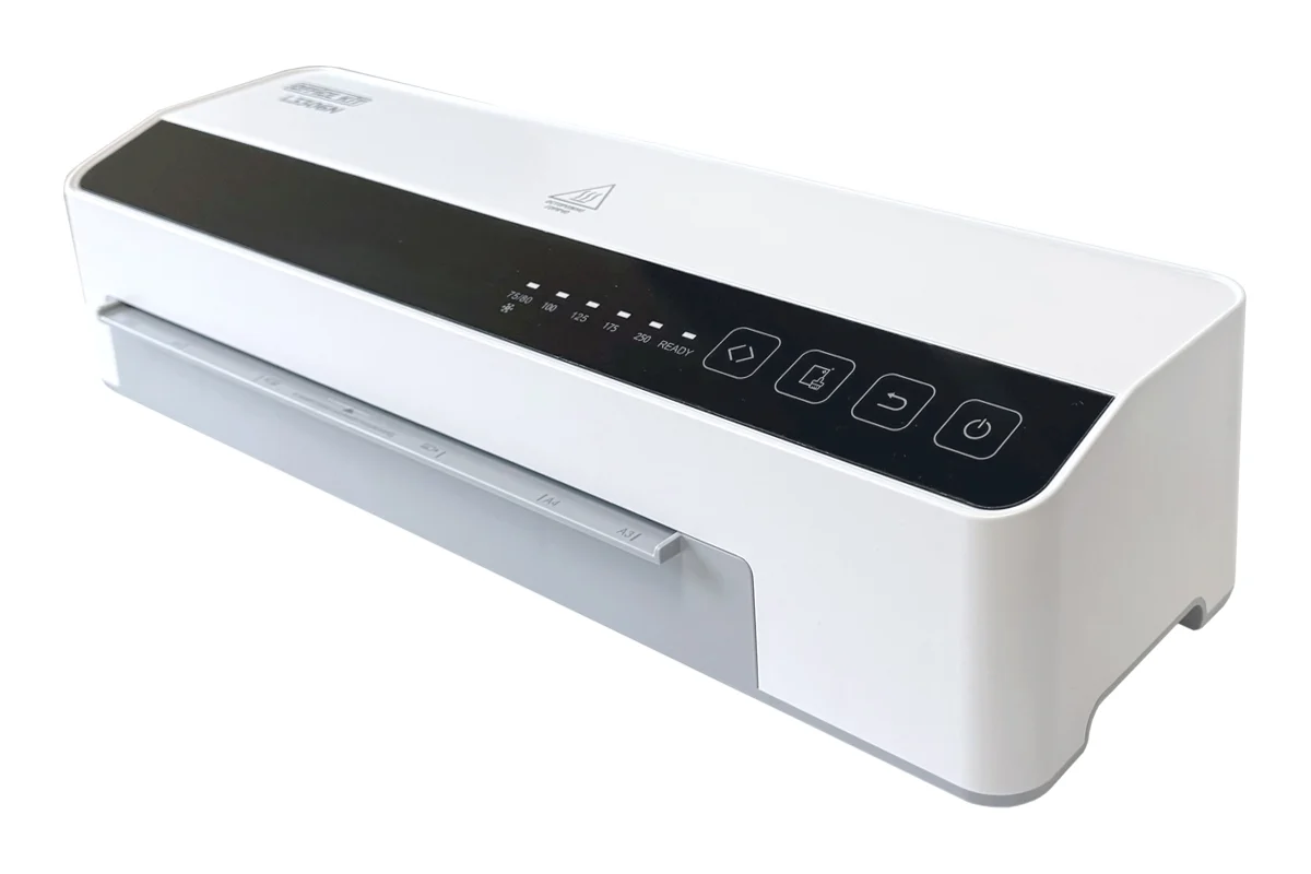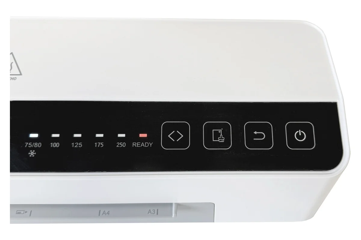 Высокоскоростной полупрофессиональный ламинатор с высокой скоростью разогрева. Идеален для крупных офисов и небольших типографий. Поддерживает работу с бумагой формата до А3 и пленкой толщиной от 75 до 250 микрон. Устройство оснащено шестью валами, из которых четыре имеют функцию нагрева.