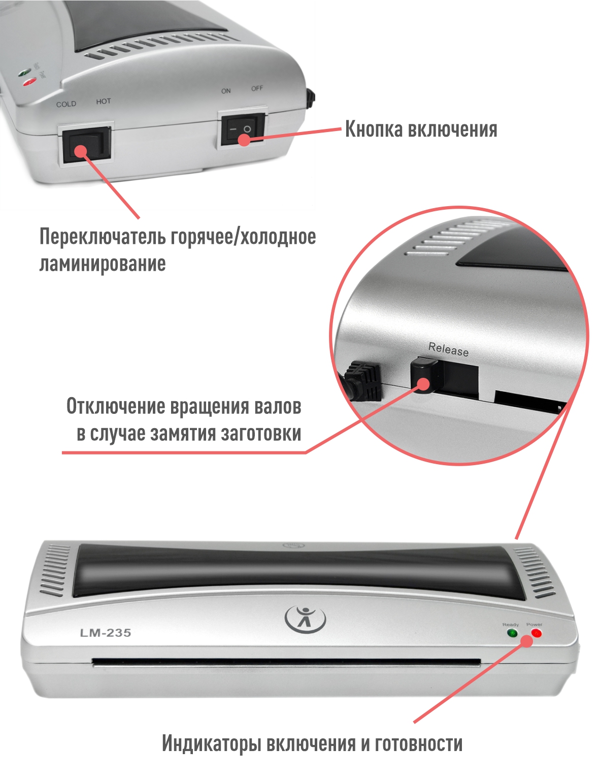 - индикаторы: питание включено, готовность к работе,