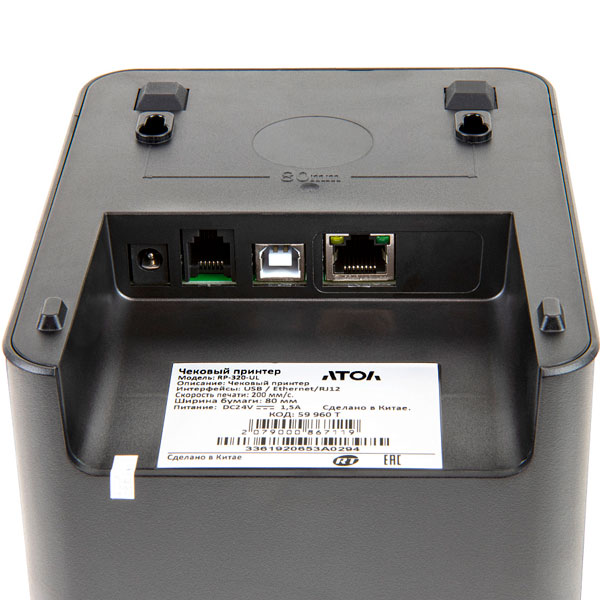 Интерфейсные порты Ethernet; USB; Денежный ящик / Звонок (RJ11, 24V)
