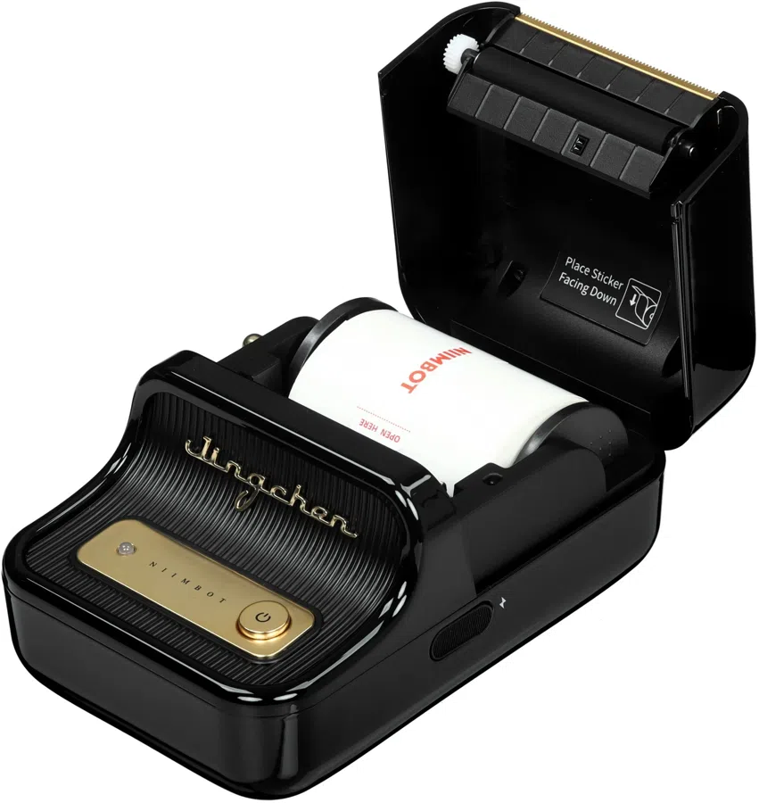 Термопринтер, стартовый рулон с этикетками, кабель для зарядки принтера.