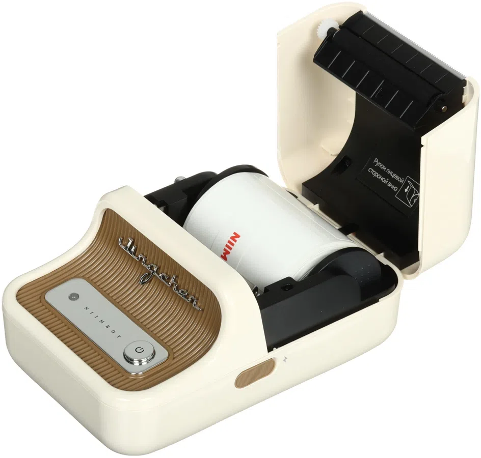 Термопринтер, стартовый рулон с этикетками, кабель для зарядки принтера.
