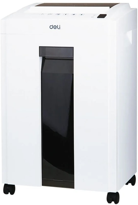 Устройство позволяет уничтожать кредитные карты и скобы. Скорость резки бумаги достигает 2 м/мин. Размер частицы - 4х25 мм. Для питания требуется подключение к сети. Потребляемая мощность не превышает 180 Вт. В качестве мер безопасности добавлена защита от перегрева. Корпус произведен из пластика. Добавлены колеса. Шредер Deli E9952 весит 8,36 кг. Размеры - 55х35х25 см. Цвета - белый и черный.