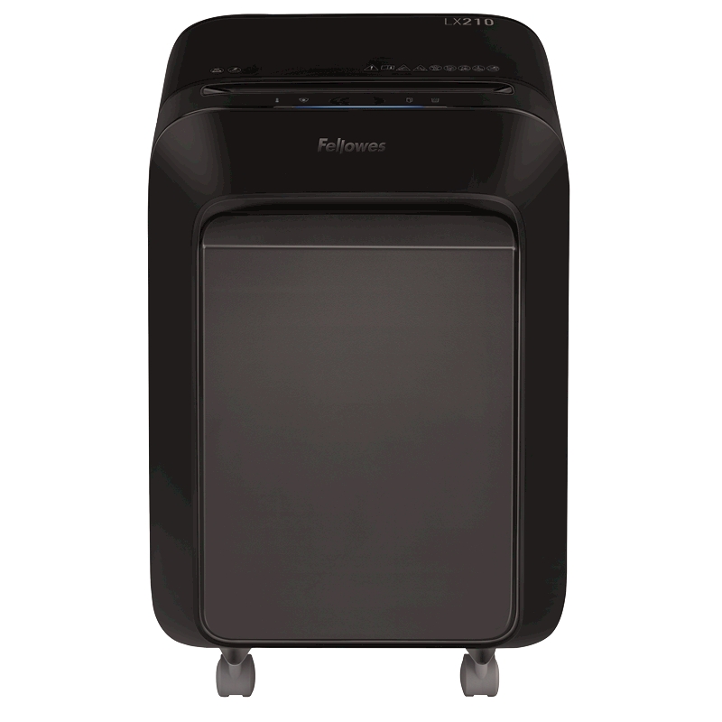 Уничтожитель бумаг представлен в лаконичном черном корпусе с роликами для перемещения. Корзина на 23 л выдвигается, дополняется датчиком заполнения и индикатором переполнения. Прибор дополнен индикатором затора, требующим активировать функцию реверса. За 1 сеанс устройство способно переработать стопку из 16 листов.