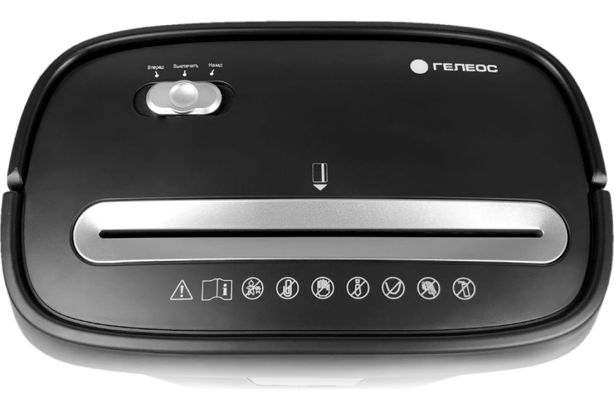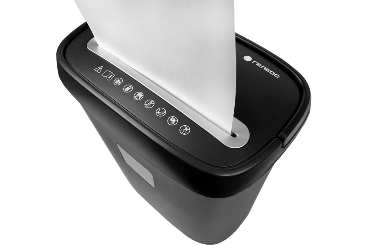 Уничтожитель документов ГЕЛЕОС DIN P-4, фрагмент 3,9х35мм, 8-10 лист70г/м2, пл. карты/скобы, 15 литров УД15-4 используется для уничтожения офисных неконфиденциальных документов.