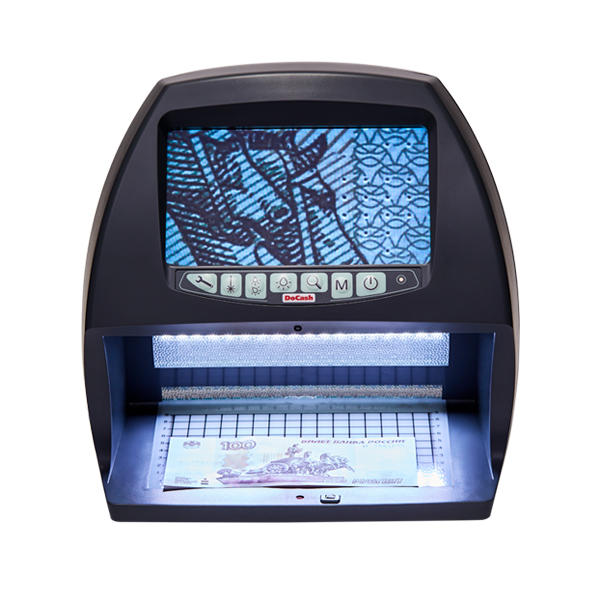 DoCash BIG D LED — универсальный просмотровый детектор банкнот для визуальной самостоятельной проверки документов, купюр и ценных бумаг. Модель позволяет провести профессиональную проверку подлинности по 9 основным признакам. Модель имеет наглядный 7-дюмовый LCD дисплей и камеру для 10- и 20-кратного увеличения. Детектор валют DoCash BIG D LED обладает всеми необходимыми видами детекции, компактными размерами и позволяет с высокой точностью выявить подделку.
