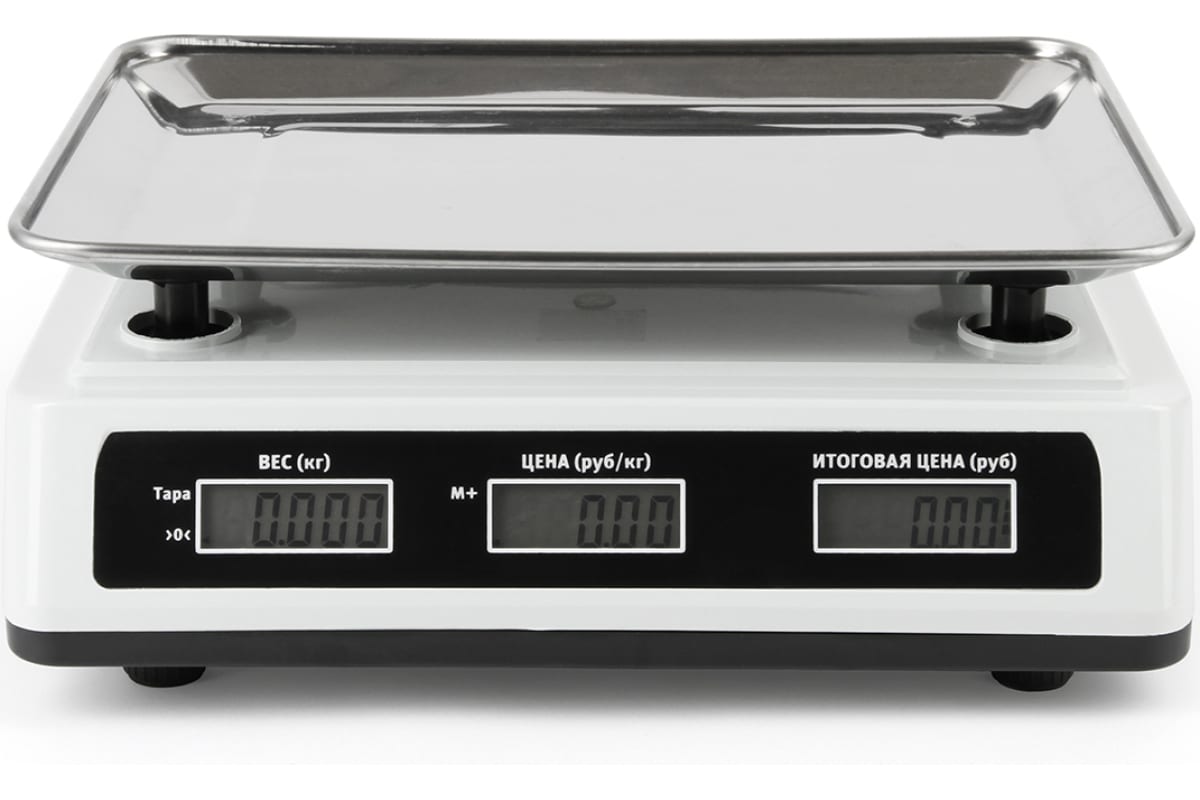 Платформа 33 x 23 см, максимальный вес 40 кг с шагом 5г, LСD с подсветкой, доп. функции.