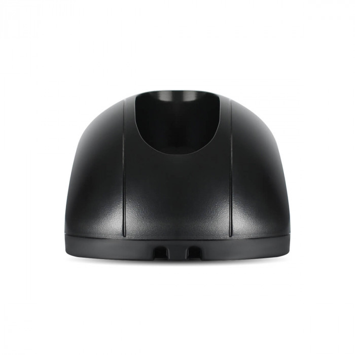 Конструкция сделана из прочного пластика. Форма корпуса гарантирует ее устойчивость. Нижняя часть основания не скользит на любых поверхностях. За надежное крепление устройства отвечает магнитный фиксатор. Прибор легко устанавливается на держатель и быстро извлекается из слота. Возможна перенастройка на работу через USB-COM с помощью настроечного штрих-кода.