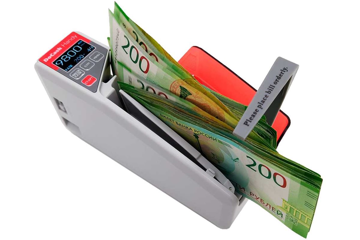 DoCash Handy - компактный и удобный в использовании портативный счетчик банкнот, предназначен для быстрого и точного подсчёта наличности. Это идеальное решение для финансовых организаций, торговых точек, курьеров и всех случаев, когда требуется быстрый и надежный пересчёт банкнот.