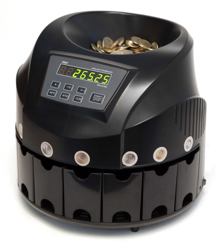 | Особенности | "Пересчет и сортировка российских монет Сортировка монет по номиналу за один «проход» Подсчет общей суммы и суммы по каждому номиналу Фасовка монет по каждому номиналу Вместительный загрузочный бункер Автоматическая остановка при переполнении приемного кармана Удобное изъятие юбилейных м |
