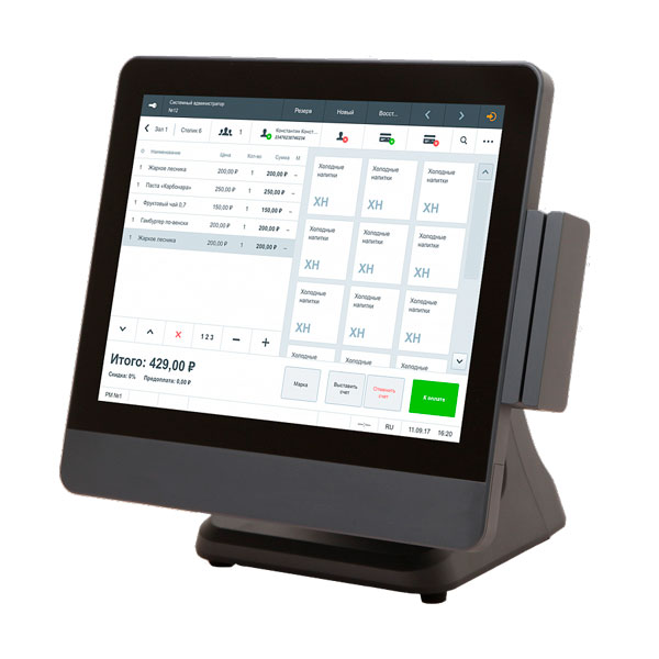 -POS-терминал обладает стильным современным дизайном и подойдет для заведений с любым интерьером.