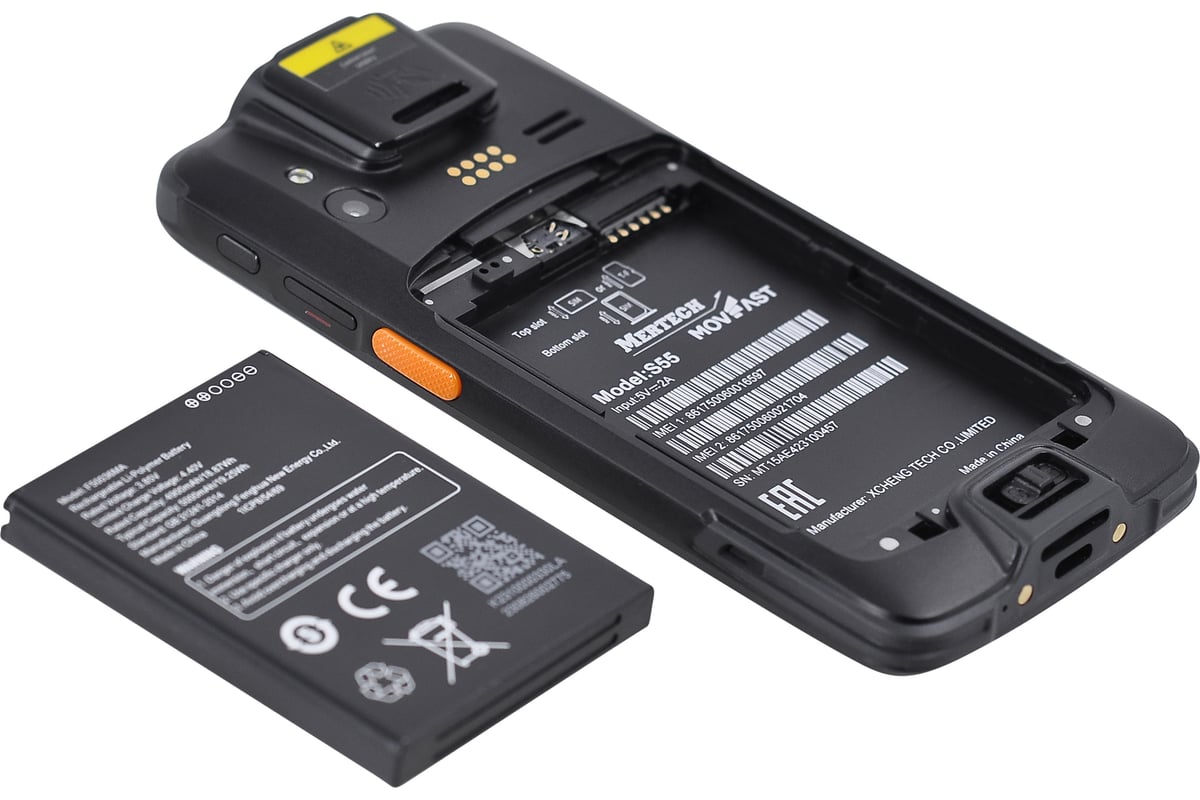 ТСД MERTECH MovFast S55 по конструкции напоминает смартфон. Сенсорный дисплей занимает большую часть площади лицевой панели. Экран с диагональю 5. 5 дюймов работает на основе IPS матрицы. У ТСД есть задняя камера 13 Мпикс и фронтальная камера на 5 Мпикс. Корпус терминала изготовлен из ударопрочного пластика и поликарбоната. Устройство выдержит многократные падения с 1,5 м. Защита корпуса по стандарту IP67 позволяет работать с ТСД при высокой влажности и в пыльных помещениях. MERTECH MovFast S55 оснащен сканирующим модулем 2D Image. Встроенный сканер с широким углом охвата ускоряет работу оператора.