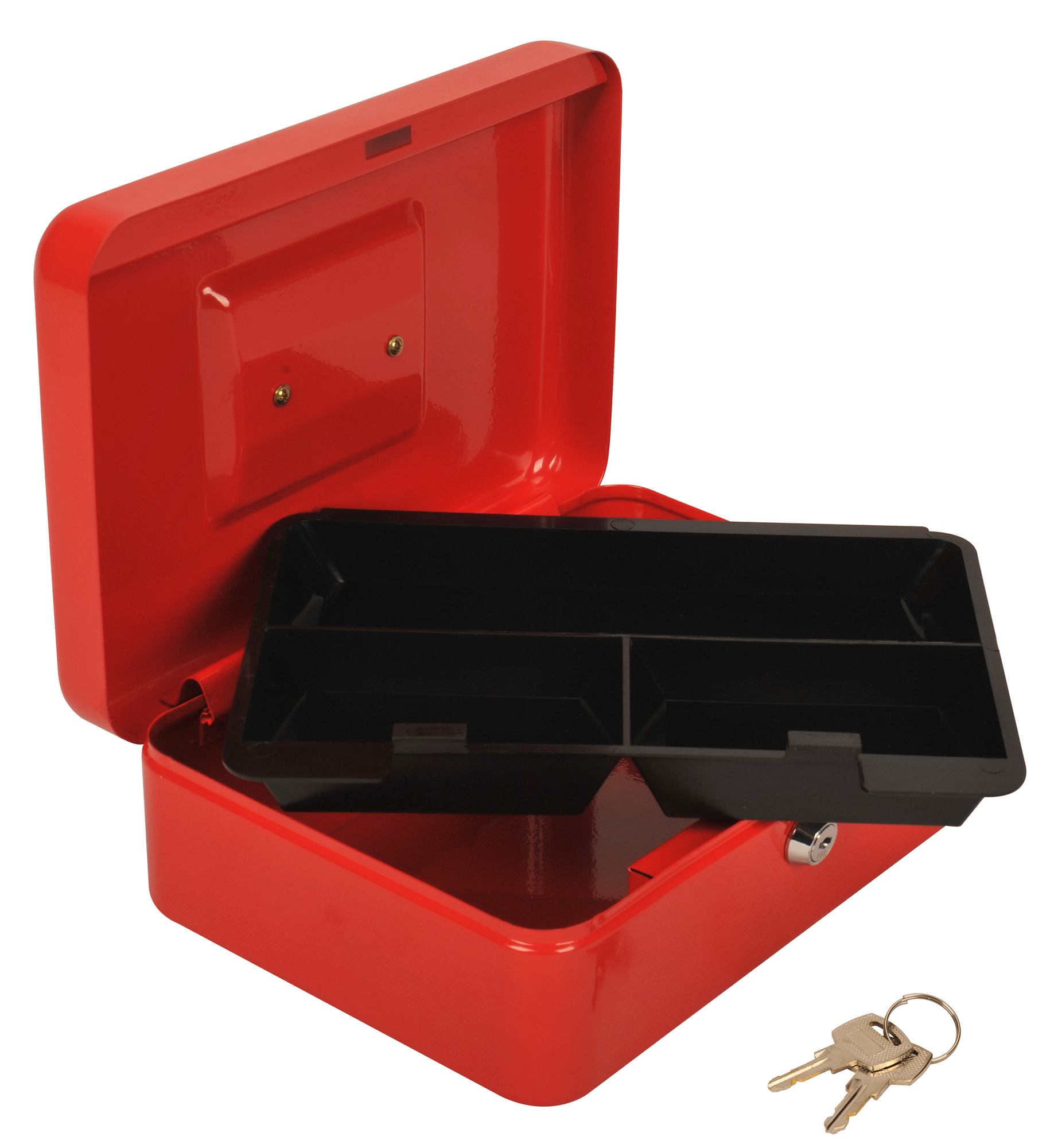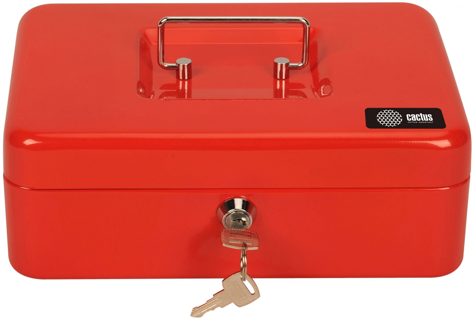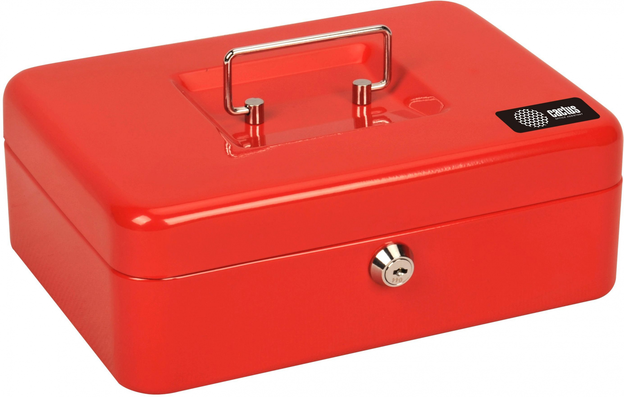 Ящик для денег Cactus CS-CB-003RD предназначен не только для хранения, но и для транспортировки ценных вещей, документов или медикаментов. Можно использовать дома и в офисе, с целью ограничения доступа посторонних лиц к содержимому. Отличное сочетание надёжности и вместительности. Съемный лоток из ударопрочного пластика с 3 отделениями. Подходит для купюр разных размеров, пластиковых карт, ключей. Под лотком есть пространство, где вполне можно хранить документы и бумаги. Изготовлен из стали толщиной 0,8 мм, прочный и надежный, цвет красный. Оснащен ключевым замком, в комплекте 2 ключа.