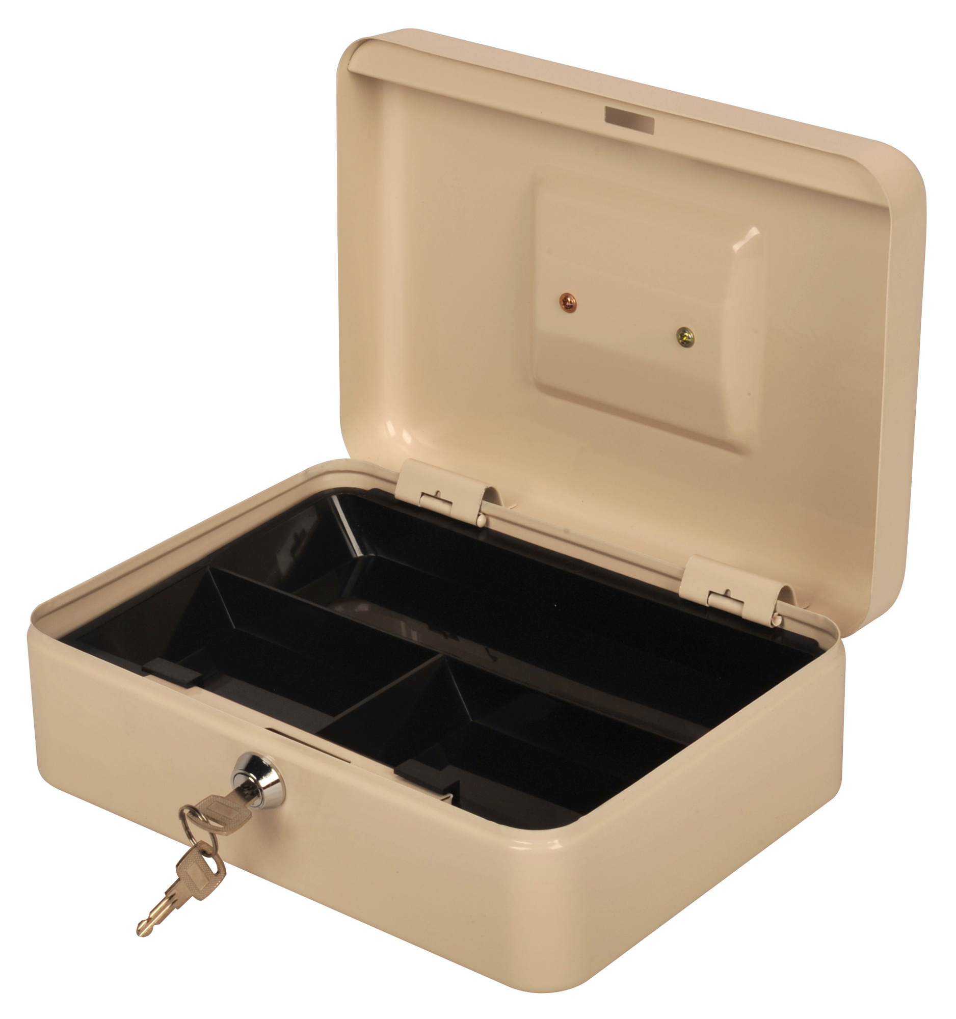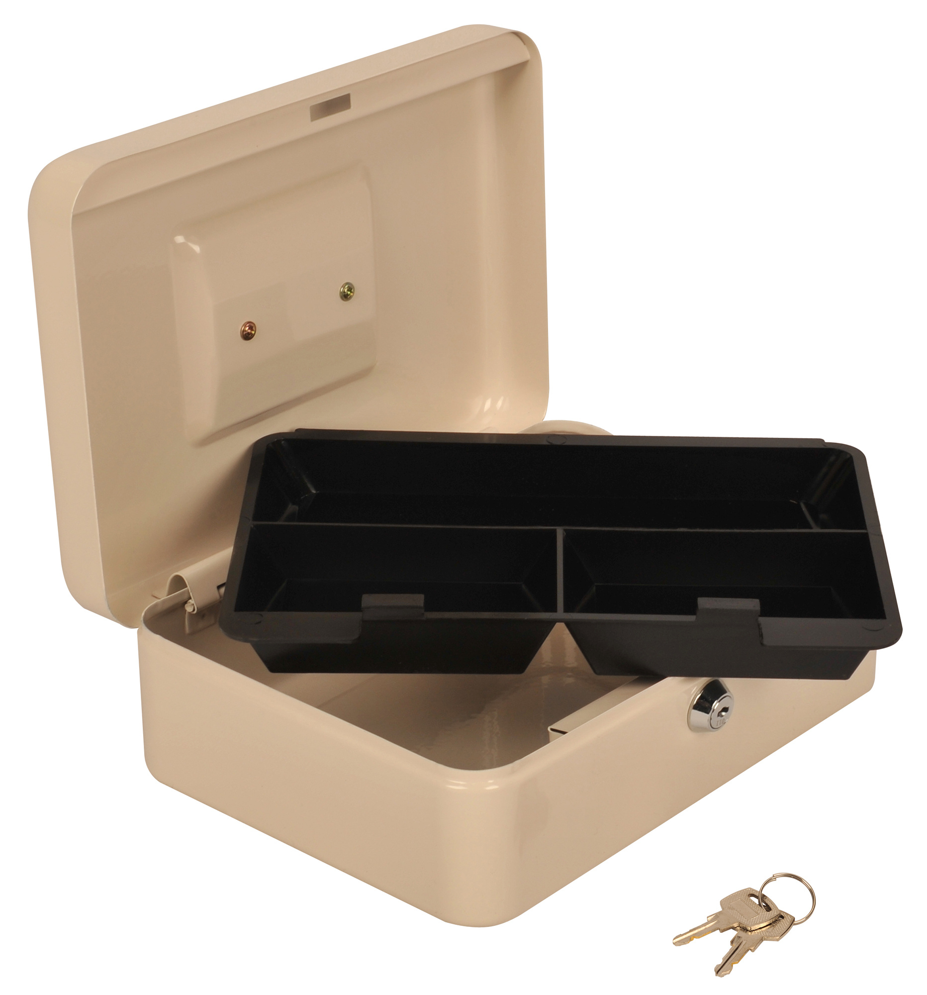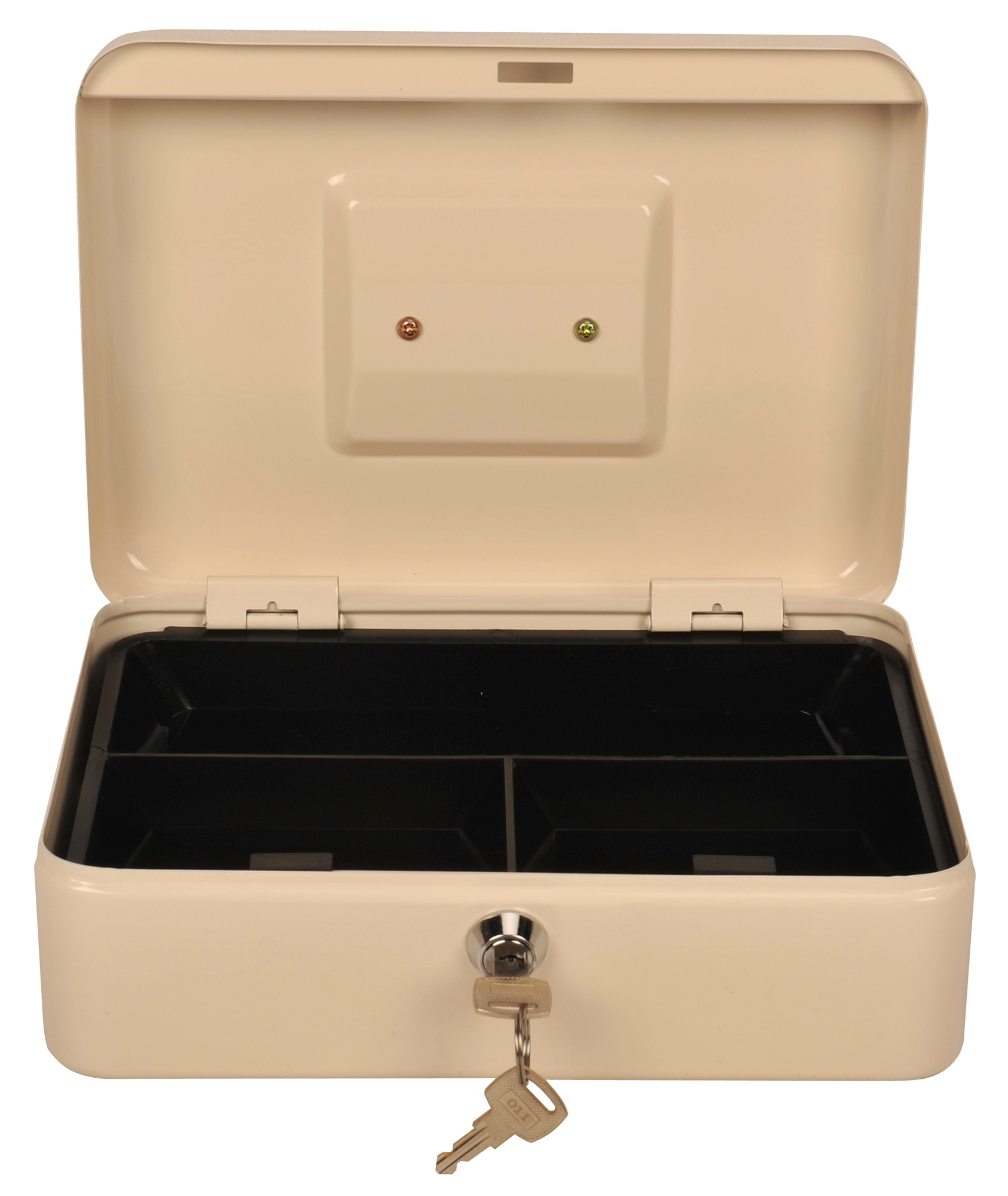 Ящик для денег Cactus CS-CB-003WT предназначен не только для хранения, но и для транспортировки ценных вещей, документов или медикаментов. Можно использовать дома и в офисе, с целью ограничения доступа посторонних лиц к содержимому. Отличное сочетание надёжности и вместительности. Съемный лоток из ударопрочного пластика с 3 отделениями. Подходит для купюр разных размеров, пластиковых карт, ключей. Под лотком есть пространство, где вполне можно хранить документы и бумаги. Изготовлен из стали, прочный и надежный, цвет «слоновая кость». Оснащен ключевым замком, в комплекте 2 ключа.