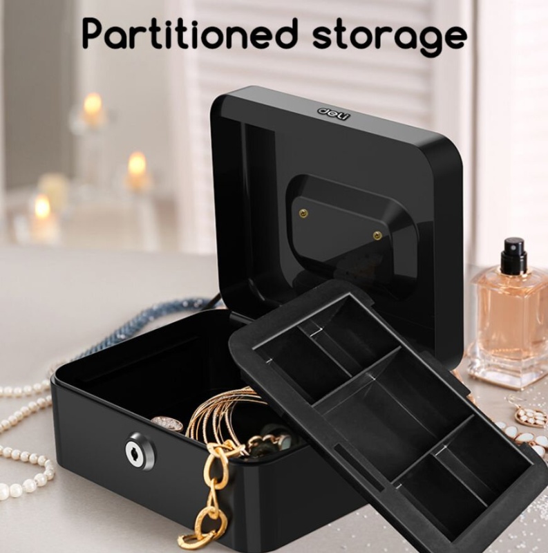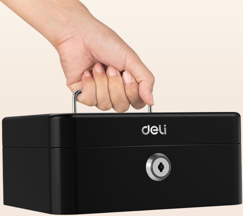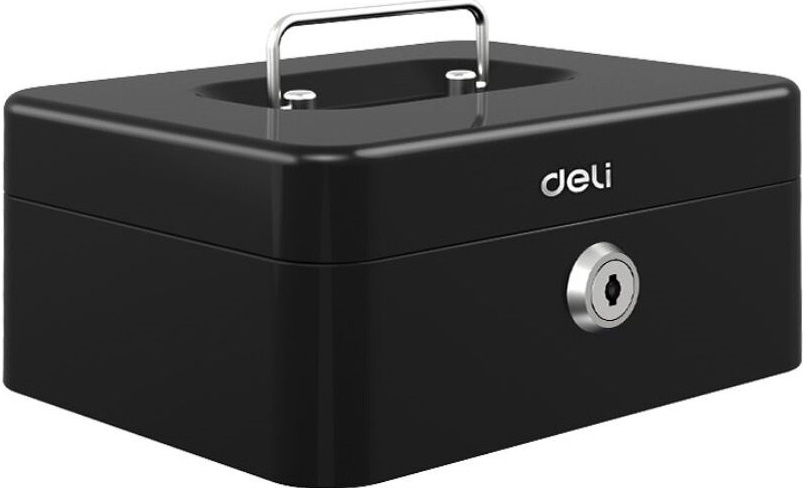 Ящик для денег Deli ET500 90x200x160 черный металл 1.2кг