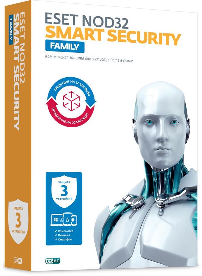 Особенности При помощи универсальной лицензии пользователь может активировать новую лицензию на 1 год на 3 устройства или продлить срок действия приобретенной ранее лицензии ESET NOD32 Smart Security Family на 20 месяцев (при этом количество устройств зависит от первоначальной лицензии).