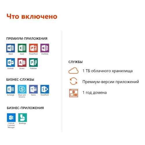 Office 365 Бизнес Премиум – решение для малого бизнеса. Продукт подходит для компаний, которым нужны приложения Office, корпоративная электронная почта и другие бизнес-службы. Office 365 Бизнес Премиум cоздан для того, чтобы сделать работу в команде идеальной. Это подписка на 12 месяцев, в состав которой входит расширенный набор приложений Microsoft Office для всех устройств, а также бизнес-службы: Exchange, Skype для бизнеса, Teams. Помимо этого вам будут доступны новые приложения для малого бизнеса: Bookings и Outlook Customer Manager, которые сделают вашу работу еще удобнее и проще, а бизнес успешнее. Вместе с подпиской вы получаете бесплатный домен на 1 год.