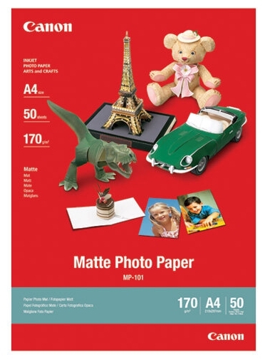 Матовая фотобумага Canon MP-101 A4 Matte Photo Paper обеспечивает высококачественную печать фотографий, графики и текста с матовым покрытием. Также может использоваться для решения творческих задач, например, для создания поздравительных открыток и объявлений.