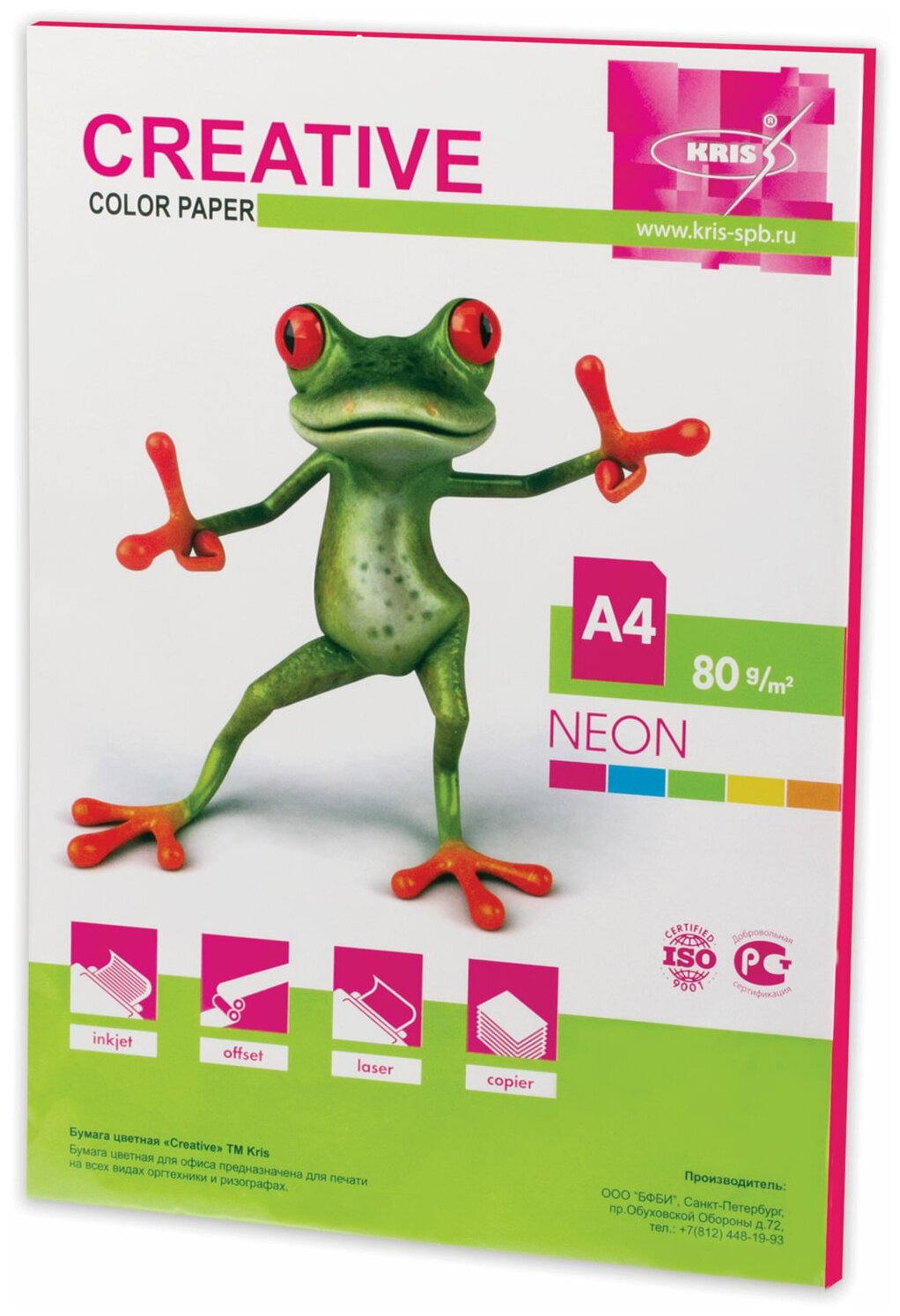 Бумага цветная Creative color, А4, 80 г/м2, 50 л., неон, малиновая, БНpr-50м