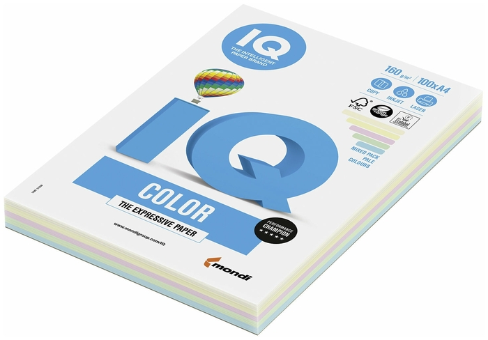 Первоклассная цветная бумага IQ интенсивных цветов обеспечивает превосходное качество при копировании, печати на лазерном, струйном принтере. Пачка содержит листы оттенков: солнечно-желтый, канареечно-желтый, красный, зеленый, голубой.