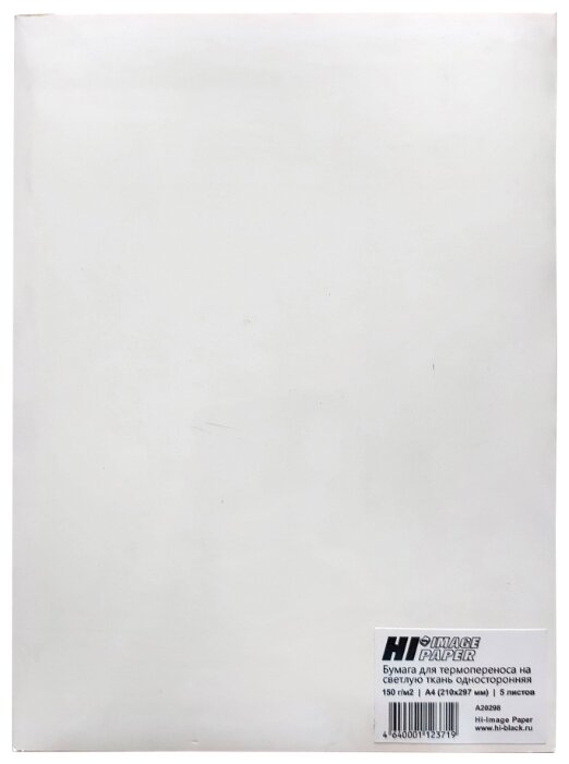 Бумага Hi-Image Paper для термопереноса на светлую ткань односторонняя, A4, 150 г/м2, 5 л.