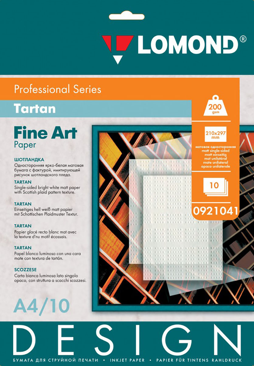 Односторонняя бумага ярко-белого цвета с фактурой, имитирующей рисунок шотландского пледа. Матовая.