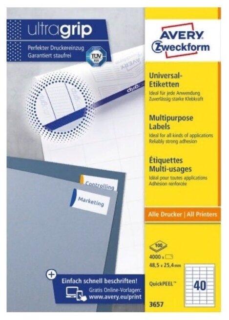 Если вы работаете в офисе с различными типами принтеров или печатаете на копировальных аппаратах, вам подойдут самоклеящиеся этикетки на листах А4. Вам нужны именно эти этикетки если Вы планируете создать этикетку с описанием товара, ценой, штрих-кодом; этикетку для маркировки предметов, архивов, коробок, упаковки, писем, почтовой рассылки и пр. На листах бумаги А4 размечены этикетки формата 48,5 x 25,4 мм.