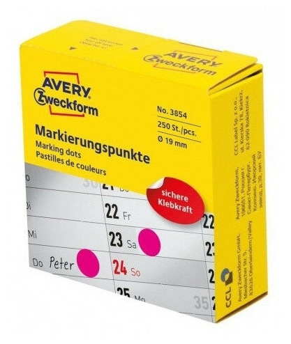 Этикетки-точки теперь в новом формате. Этикетки в диспенсере просто идеальны: просто вытащите нужное количество из дозатора, придержите и приклейте. И до следующего использования остальные этикетки сохраняются в безопасности и чистоте. Этикетки-точки желтого цвета оживят любое дело: презентацию, игру, обучение и т.д. Запаса этикеток Вам хватит надолго - 250 штук в упаковке. Диаметр этикетки - 19 мм.